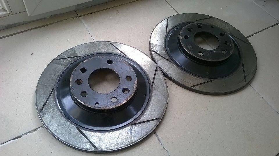 Kierownica po prawej stronie to żadna przeszkoda auto jeżdzi baaaardzo rzadko. Praktycznie cały rok stoi sobie w garażu. Na codzień mam 9-tkę do walenia kilometrów :D Niżej fotka tarcz tył wygrzebałem dziś z piwnicy i zaczołem czyścić z rdzy rozmiar 318mm.