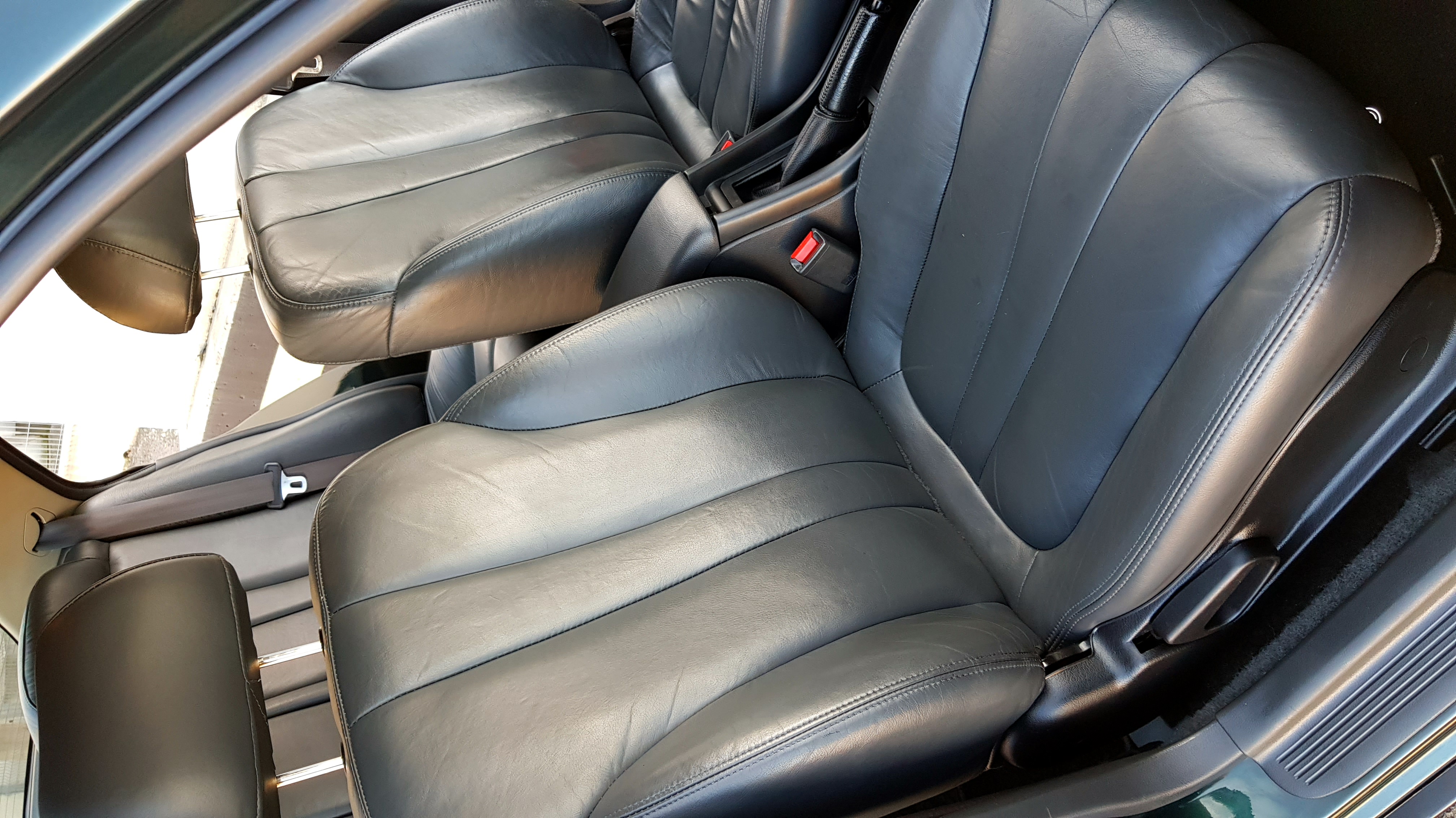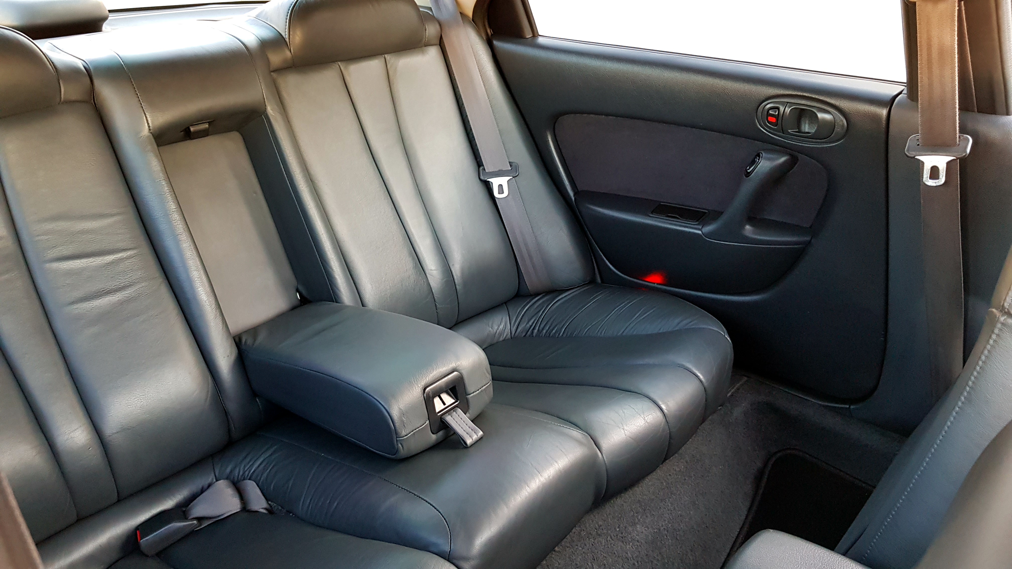 Wnętrze auta urzekło mnie najbardziej. Cieżko uwierzyć że po przebiegu 230000km środek może tak wyglądać. Ktoś niesamowicie dbał o ten samochód. Skóry w stanie świetnym poza drobnymi wgniotkami na fotelu kierowcy, plastiki, kierownica, przyciski – to wszystko wygląda jakby auto wczoraj opuściło salon. Czarne skóry biją niesamowitą elegancją!