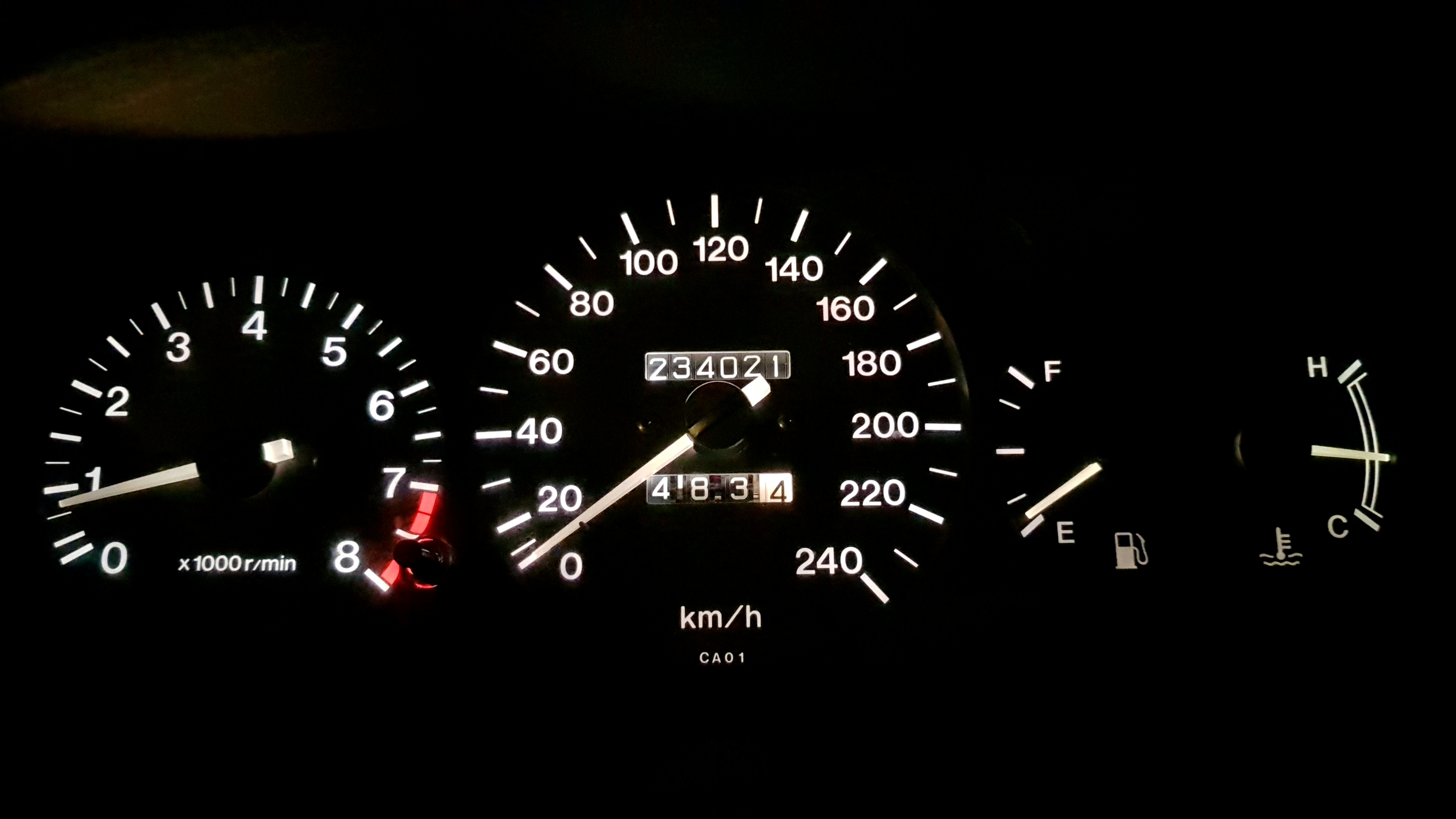 Jako wyjaśnienie dla potomnych napiszę więc, że Xedos nigdy nie miał zielonego podświetlenia zegarów ani deski. Oryginalnie było ono białe. Wszystkie elementy deski podświetlane były żaróweczkami w niebieskich gumowych osłonkach, co w efekcie dawało białe zimne światło. A to co Risto ma u siebie jest modyfikacją.