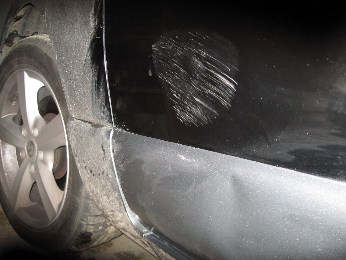 Rys praktycznie nie widać, może minimalnie ze 2 zostały te głębsze ale to trzeba z bliska i z dobrym światłem patrzeć, i blacha jest lekko przyfalowana ale za te 400zł które dostałem do ręki to można z tym żyć, normalnie nie widać tylko trzeba się przyjrzeć. Koszt roboty.... hm... około 2zł za papier ścierny a menzerna jeszcze została z polerki wakacyjnej także całkiem dobrze to wyszło.