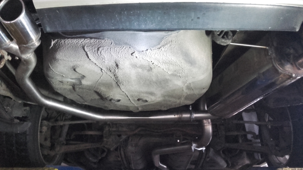 Na upartego może i by upchał z lewej strony drugi tłumik ale po co robić pod górkę ? Raz to ingerencja w podłogę a dwa takie ciasne pasowanie mogłoby tłuc wydechem.
