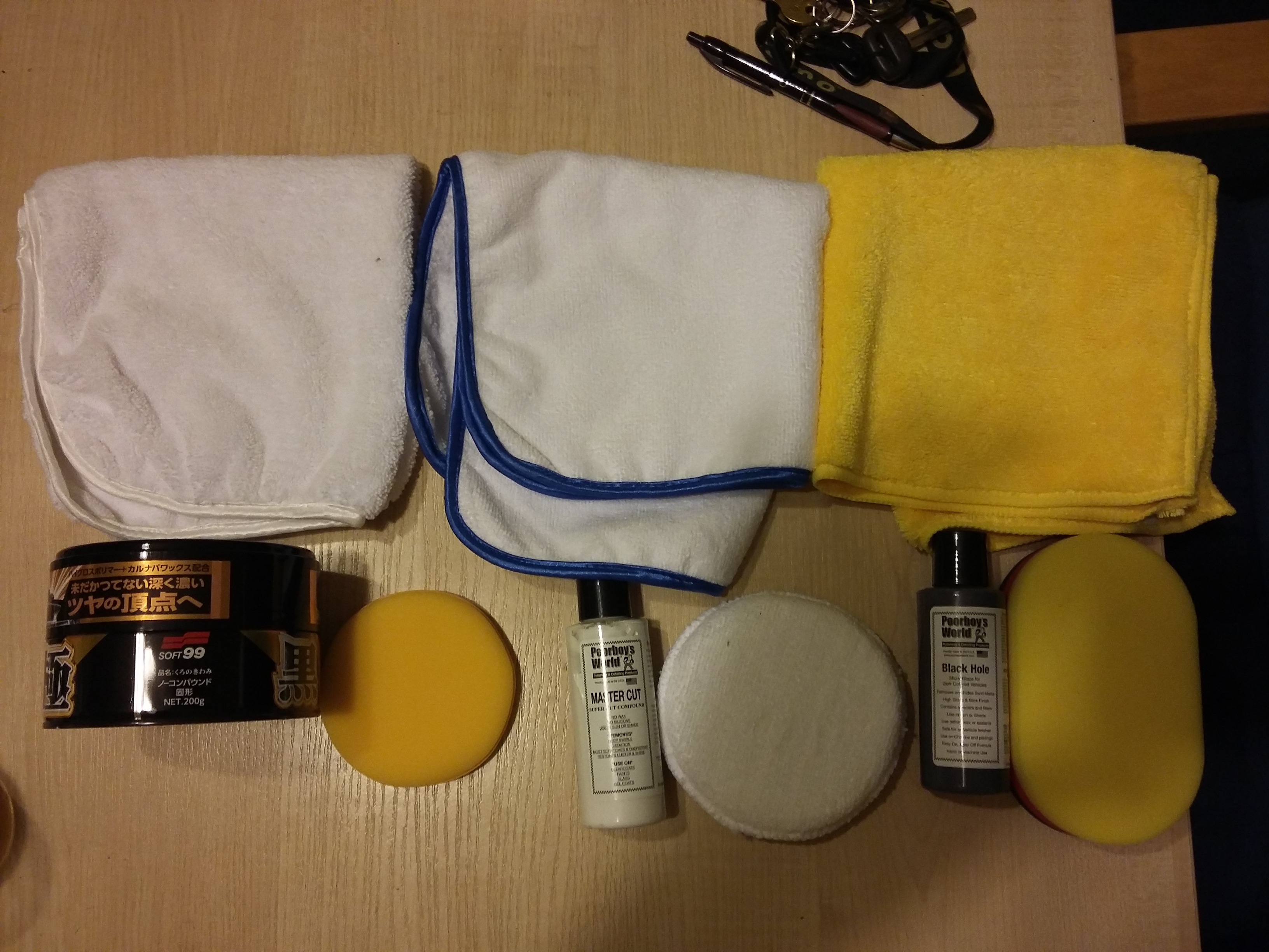 Na początek porządne mycie, po osuszaniu master cut od poorboy's, następnie poorboy's black hole i na koniec soft 99 kiwami