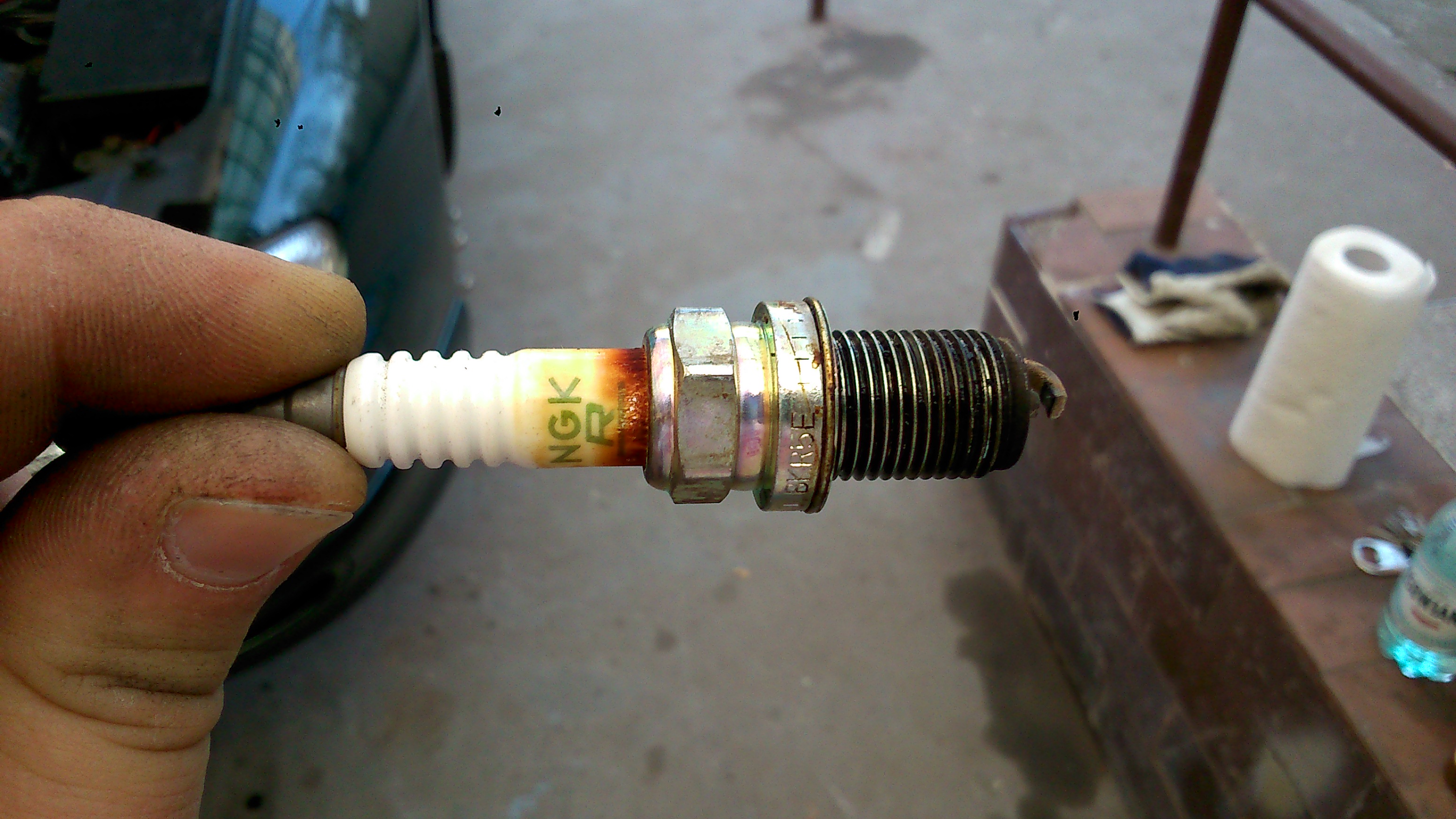 Najpierw wymieniłem olej i filtr a następnie zabrałem się za świece. Niby źle nie wyglądały ale porcelanka już swoje najlepsze dni miała za sobą. Dopłaciłem trochę i kupiłem irydowe które (teoretycznie) powinny wytrzymać dłużej. Czas pokaże