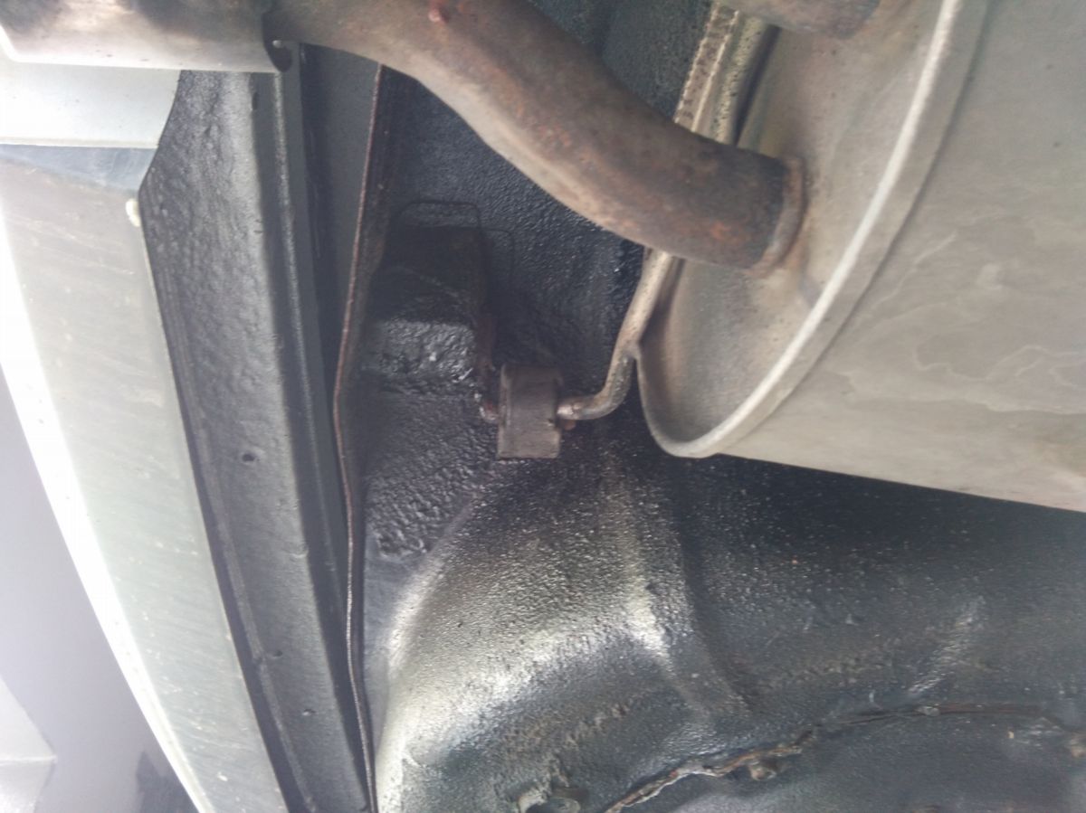 , przy okazji pykłem foty podłogi jak to aktualnie wygląda, pospawany tłumik bo była mała dziurka, przy uchwycie na ostatnim tłumiku, jak tak też dzisiaj prześledziłem tłumik sprawdzając jego stan, zauważyłem że czegoś mi brakuje i nie mam katalizatora. A wywalał będę prekaty i myślałem, że chociaż ten ostatni zostanie na swoim miejscu.