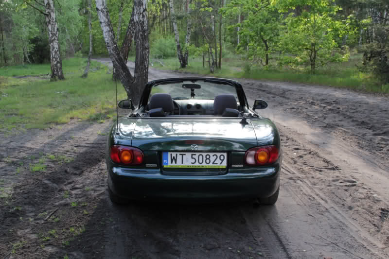 Mazdę sprowadziłem rok temu z Niemiec po około dwu miesięcznych poszukiwaniach. Kupiona w komisie w Pfullingen, od pierwszej właścicielki, wykryliśmy że miała niewielką przygodę z przodu (kawałek zderzaka był lakierowany). Ponieważ budżet jak na 1.8 był dosyć okrojony, misza miała kilka niedoskonałości – dach w słabym stanie, rozdarcie fotela kierowcy, zapchaną pompę sprzęgła ale ogólnie – samochód zdrowy i bez poważnych uderzeń