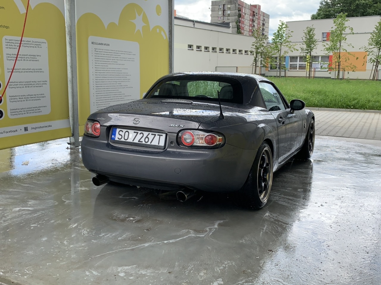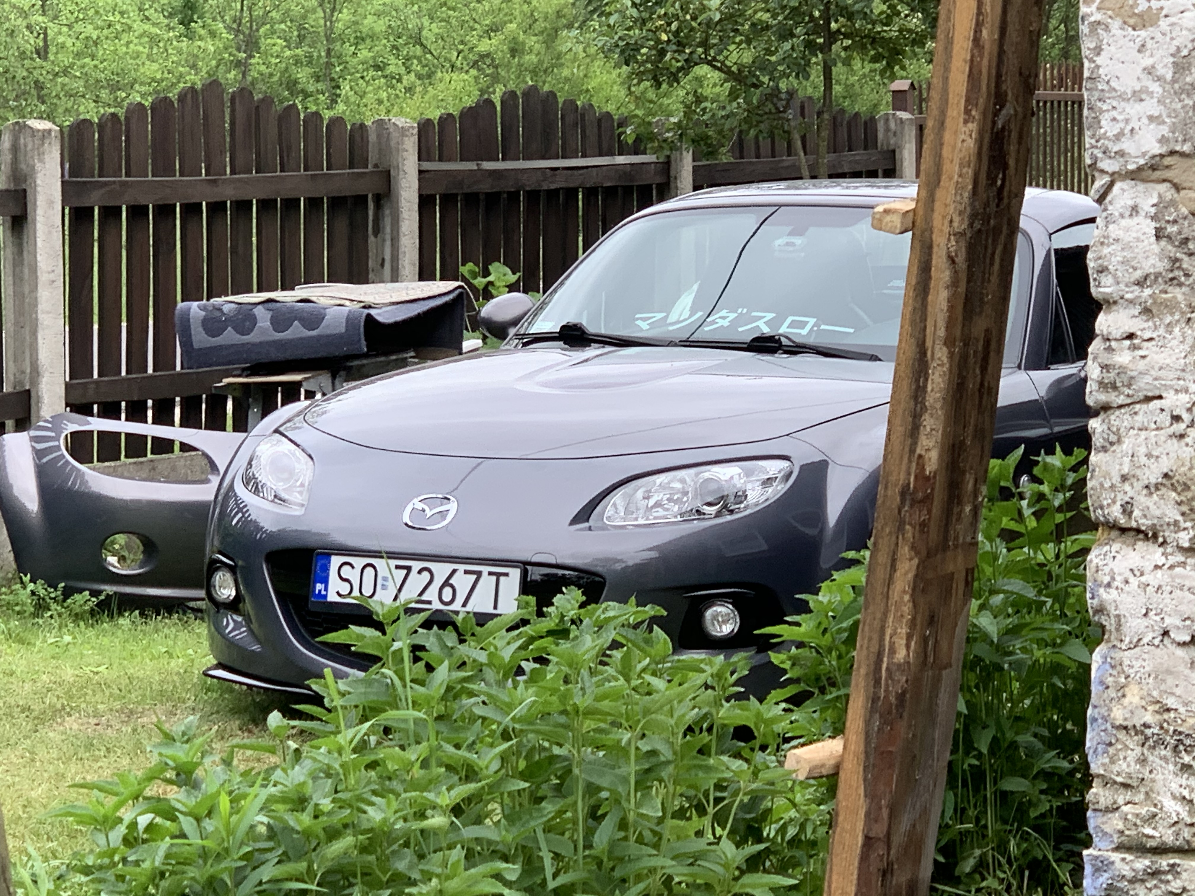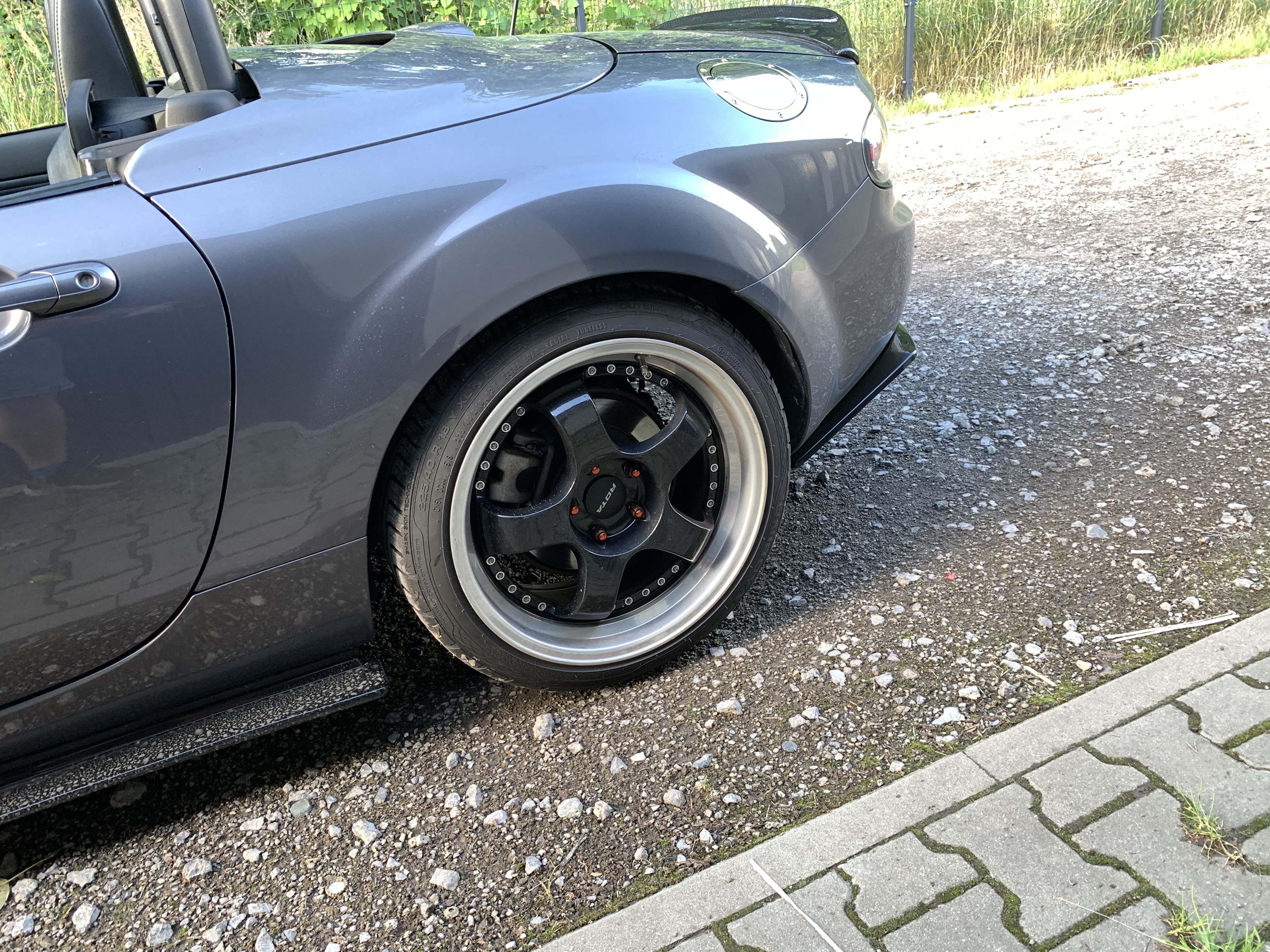 Oto ona – NC PRHT w kolorze Galaxy Grey, który na zdjęciach nigdy mi się nie podobał a na żywo spowodował opad szczęki (choć po srebrnym RX-8 chyba nawet różowy byłby ok, nigdy więcej srebrnego samochodu <dupa> ) z silnikiem 1.8 (chciałem 2.0 ale jestem bardzo pozytywnie zaskoczony tym, jak chodzi to 1.8 – spodziewałem się, że będzie porównywalnie jak w NB z 1.6 a tu przy 140 na piątym biegu wciskam gaz i można normalnie wyprzedzać bez redukowania, powiem szczerze myślałem że auto nie będzie chciało jechać, szczególnie po przesiadce z mocniejszego samochodu ale jednak nie jest tak źle, szczególnie, że wersja PRHT jest cięższa od soft topa)