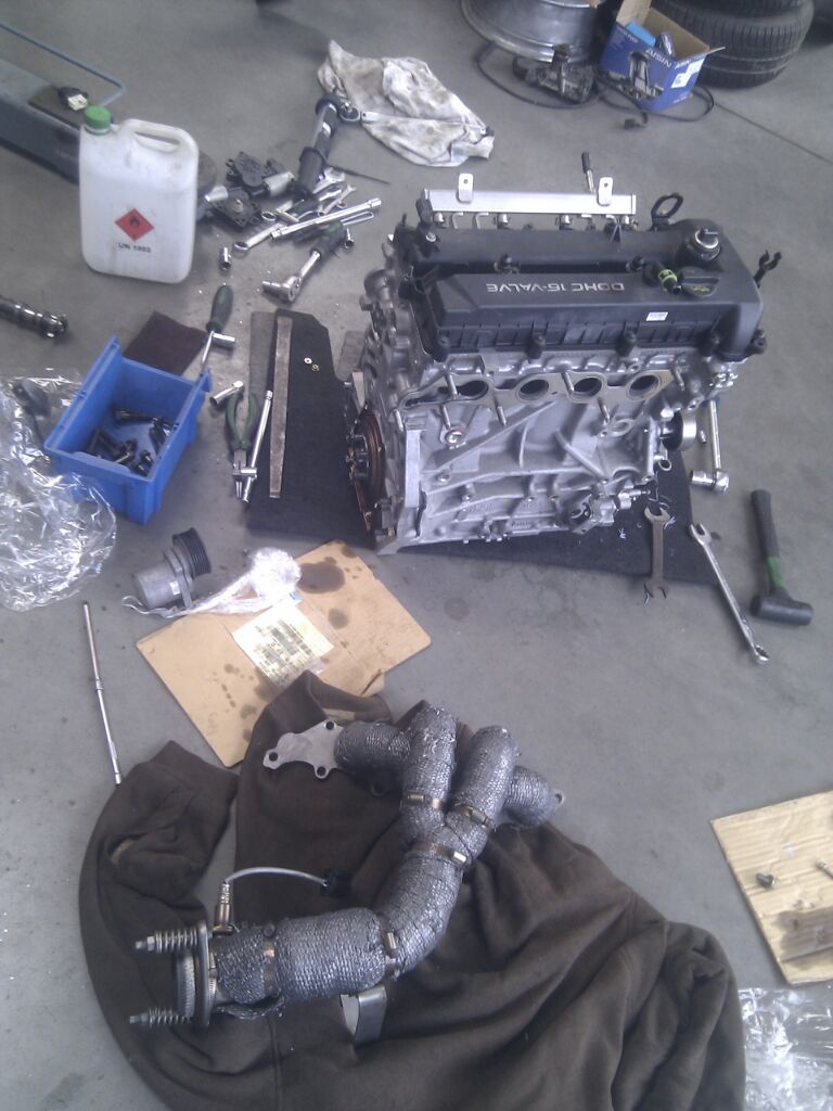 Z głowicy zabrałem 0.9mm jedyna możliwość doprężenia tego motoru jaka przyszła mi do głowy tłoków nie znalazłem co do regulowanych kółek niestety odpada silnik ma zmienną fazę wałka ssącego.COSWORTH ma zestaw wałków które mają działać z tym ustrojstwem sprężyny też zalecają zmienić