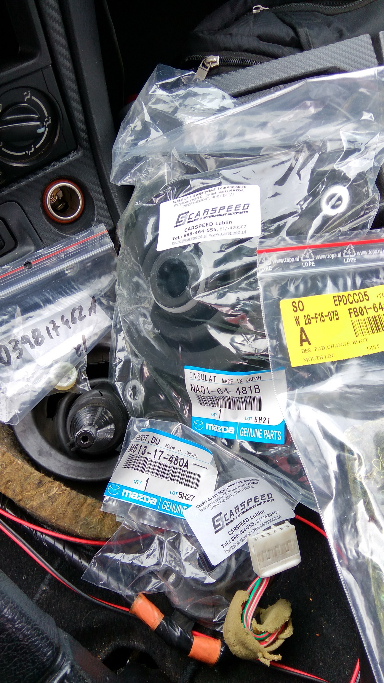 Zamach wysłany do odelżenia, tarcza sprzęgła do obicia kevlarem (ze starej prawie wypadły sprężynki), łożysko wyciskowe i prowadzące, uszczelniacz skrzyni od strony silnika i wału korbowego kupione.