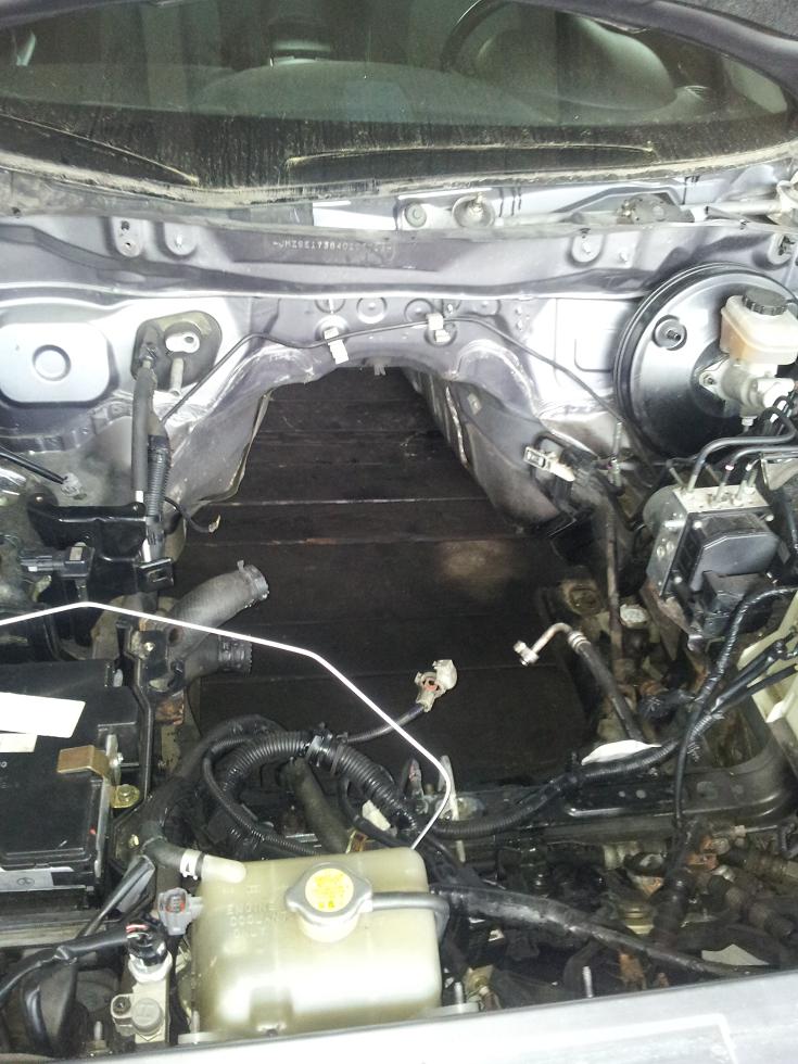 dodatkowo aby kolektor ssący się zmieścił z jednej strony też należy podciąć podszybie lub kombinować z kolektorem ssącym ja wybrałem te pierwsze rozwiązanie ,oczywiście przy okazji wytłumiłem gródź i od strony silnika i od strony wnętrza