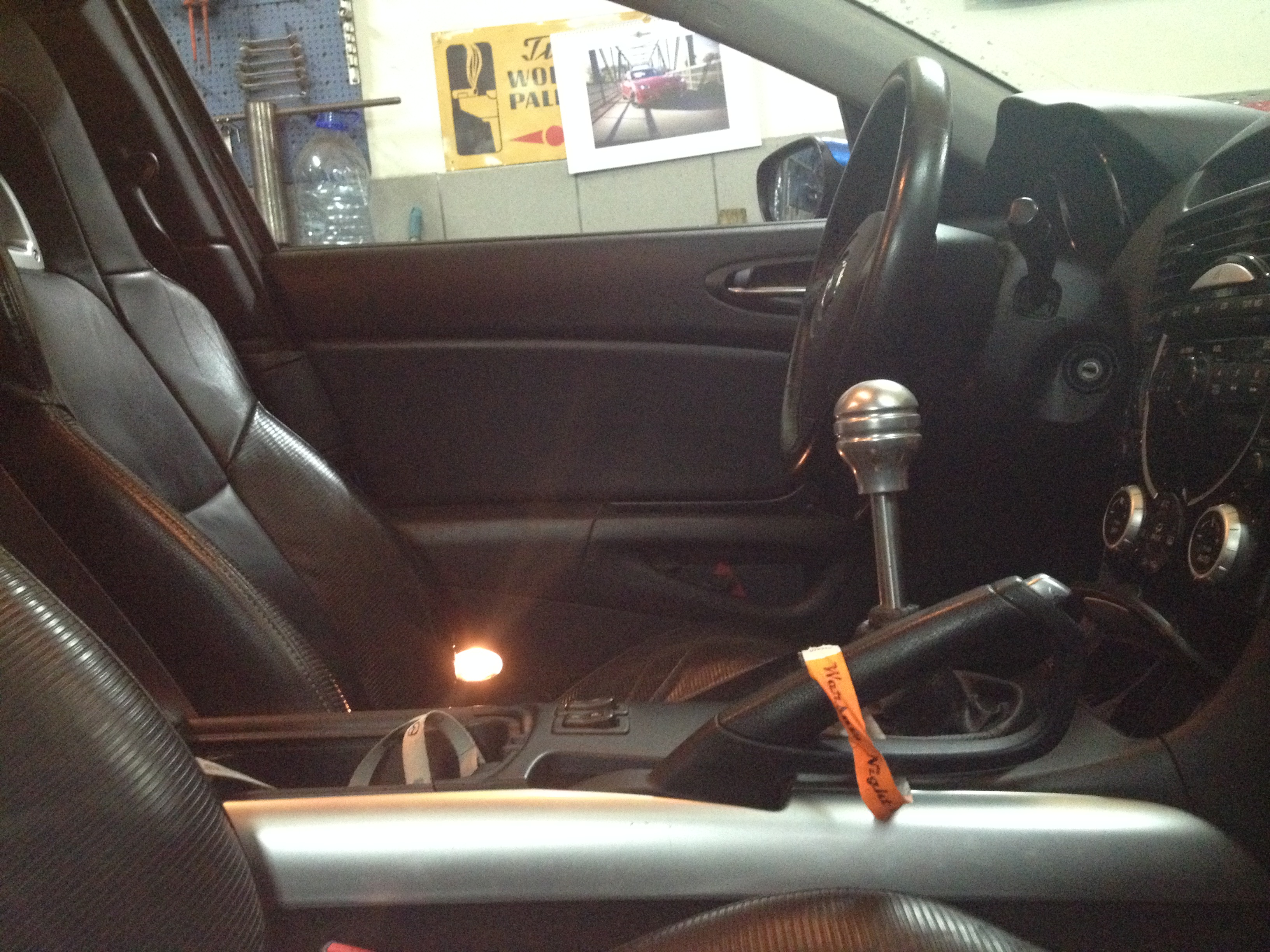 No więc dawno tu nie zaglądałem. Niestety w Poznaniu wóz pojedzie z seryjnym piecem bo ilość pracy w warsztacie nie pozwoli na ukończenie budowy mojego silnika w terminie. Nie mam zamiaru na prędkości robić bo jest wiele elementów do dopracowania jeszcze. Nie mniej wleciało co nie co. Pojawił się short shifter z przedłużonym lewarem mojej produkcji i pomysłu + synchro saver dzięki któremu nie morduje się tak skrzynia przy agresywnych zmianach biegów. Finalnie skok samej gałki jest w sumie taki sam ale jest dużo bliżej kierownicy i wyżej. Wleciał kubełek + szyna Race Roots, pasy szelkowe Sparco i kierownica OMP. Poza kubłem wszystko oryginał. Kubeł ma zamontowaną klamrę do pasów oryginalną (z angola ukradłem ) więc w trasie można zapiąć seryjne pasy a na torze wpinam zapinkę w tą klamrę (też wycięta z angola) i nie piłuje gęby, ze pasy nie zapięte są . Do kubła się na treningach nie czepiaja więc jest taki jaki jest. Może kiedyś w przyszłości jak się trafi jakiś męski to sie wstawi. Na codzień i tak pomykam w seryjnym bo w okoliczności kiedy moja zona ma prowadzić to z jej wzrostem w kubełku słabo to idzie :)