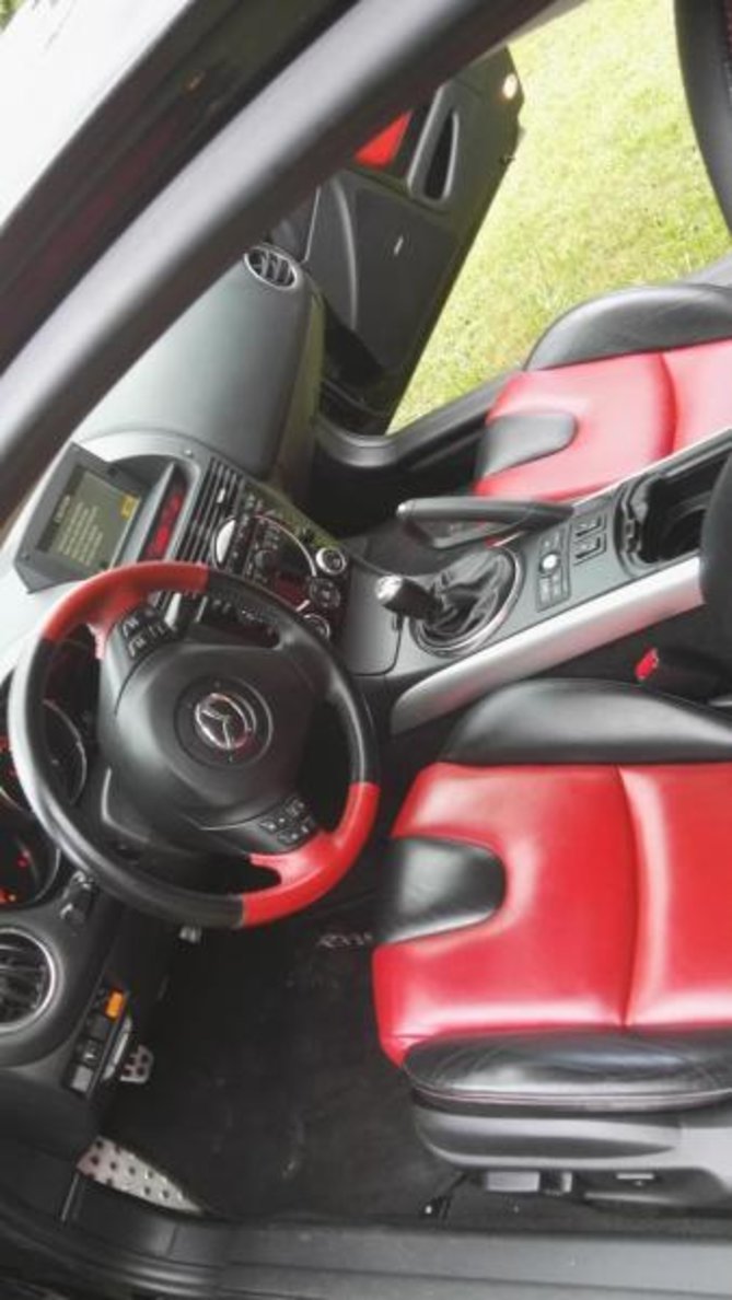 czujniki cofania, navi z dzojem, podgrzewane fotele, el. fotele, czarno czerwona skóra, xenon, spryski swiatel, tempomat, wspom, kiery, lampki w drzwiach i lusterkach, odtwarzacz duży Bose wraz z głośnikami, odtwarzacz dvd, klima, chromowane elementy.
