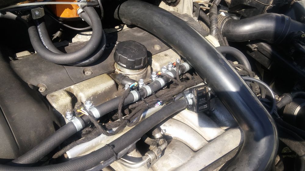 Przewody gumowe od wtrysków do kolektora mają po 2cm, wszystkie. Osłona listwy benzynowej niestety musiała wylecieć. Wiązki elektryczne robiłem ja więc jeśli coś spartolone to linczować mnie. Media :