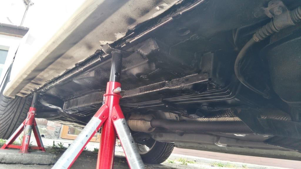 W ostatnim czasie dokończyłem konserwację podwozia. Zabezpieczona została reszta podłogi, której poprzednio nie dałem już rady zrobić oraz progi. Teraz już cały spód jest zakonserwowany.