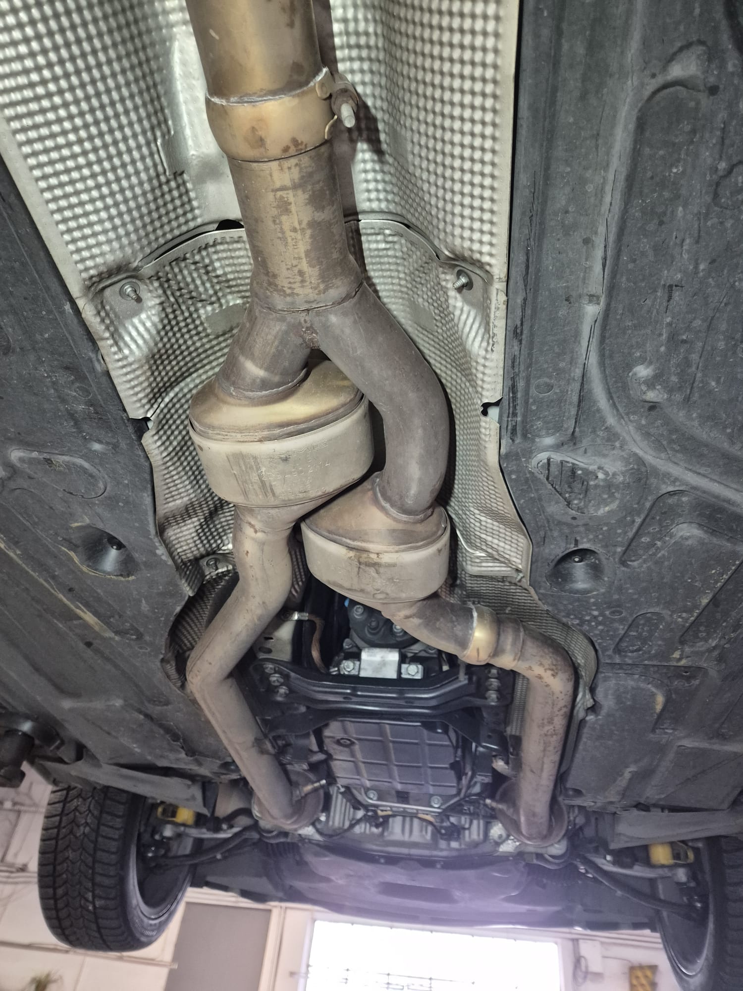 Szczerze to myślałem o wycięciu środkowych tłumików, ale ciągle się waham. Układ jest cały oryginalny, w emblematach AMG. Poza tym ja nie znoszę zbyt głośnych aut, nie chcę sobie strzelić w kolano głośnością.