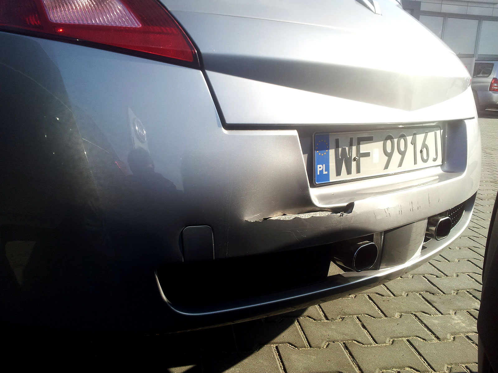 Dwie kolizje pod rząd! Najpierw pan w berlingo się zagapił i nie zauważył, że przepuszczam pieszych przy skręcie, a kilka dni później inny pan w voyagerze nie zauważył, że stoję na czerwonym. Szczęśliwie tylko pokrywa zderzaka i nakładka klapy do wymiany i lakierowania. Samochód właśnie się składa. Przy okazji zamówiłem poprawkę wspomnianego przodu:
