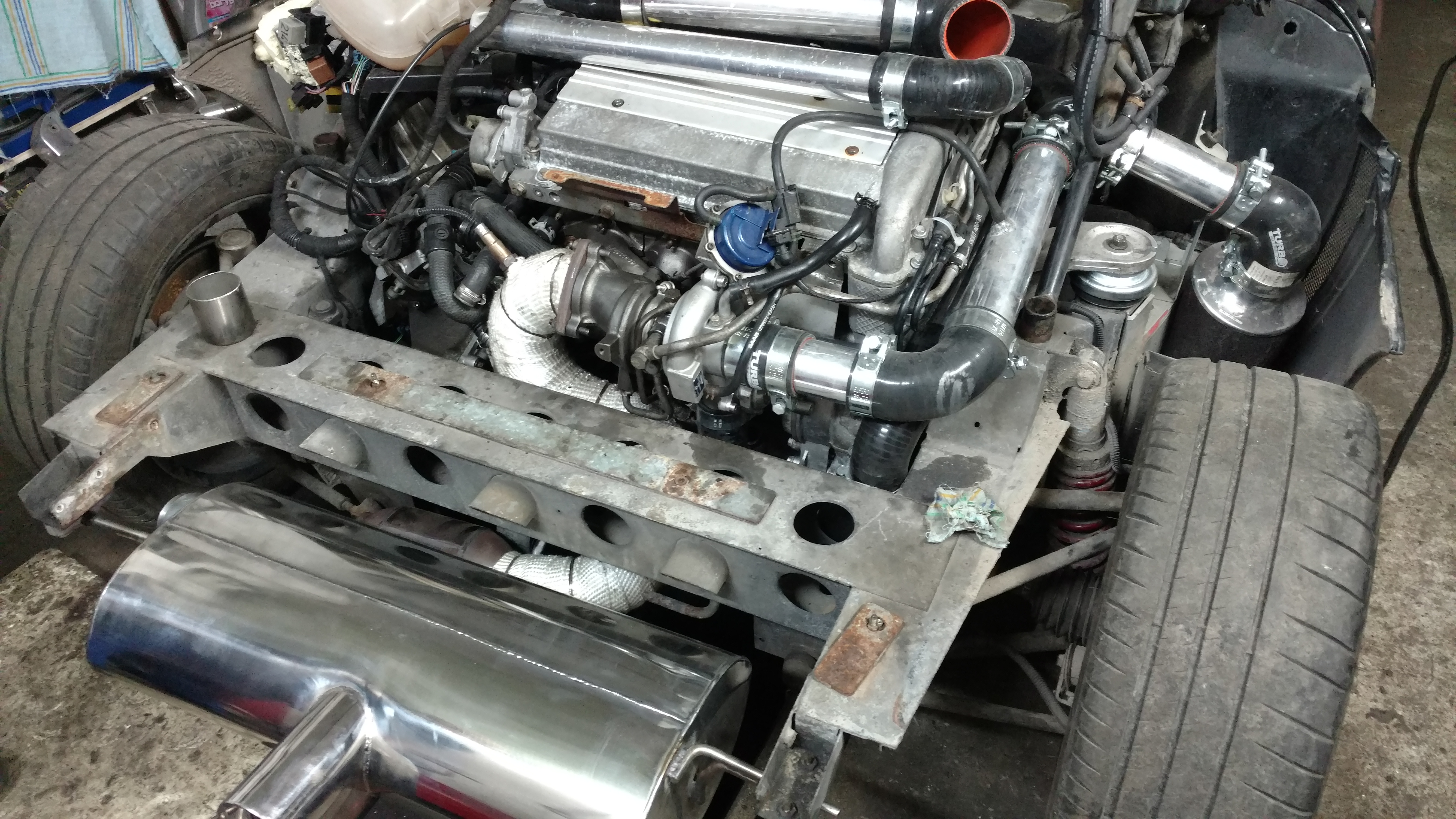 td04hl-20t na pokladzie, dalej DV Forge, tlumik koncowy 2,5 cala przelotowy tez, linki wybieraka skrzyni biegow poprawione, pokretlo od kontroli trakcji zamontowane w dostepnym meijscu, wymienione simeringi polosi i walu glownego. montuje jeszcze poprawiony DBW od ecumastera i ich mapy i powinno to na Poznaniu smigac. mam nadzieje ze zejde ponizej 1m50.