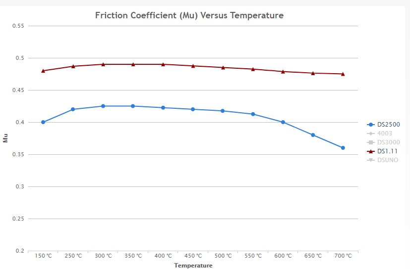 Im wyższy współczynnik tarcia Mu w danej temperaturze tym większa siła hamowania w danej temperaturze.
