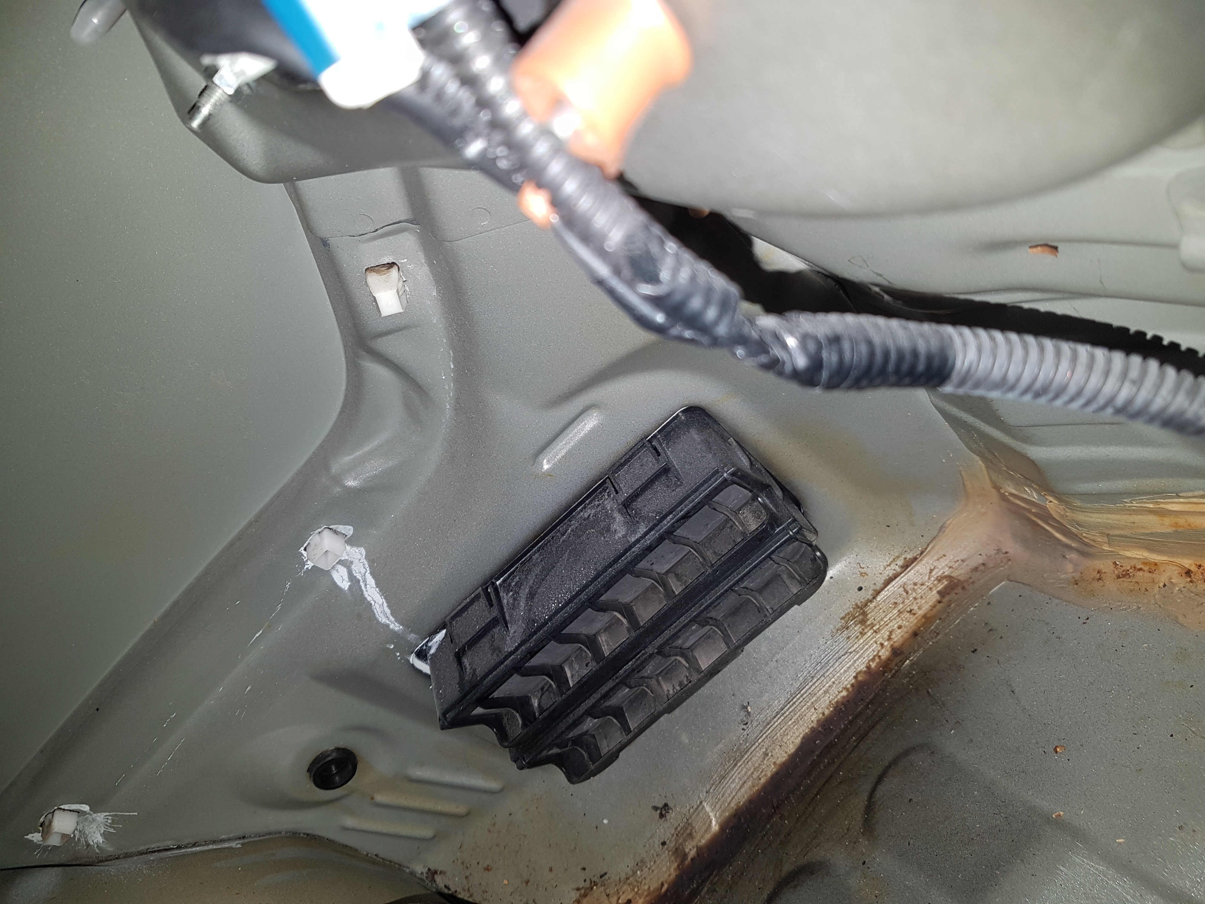 dziś podczas wkładania do bagażnika tego co do montażu amorów wyleciało zajrzałem pod tapicerki boczne i niestety mam kolejny powód do zmartwień.