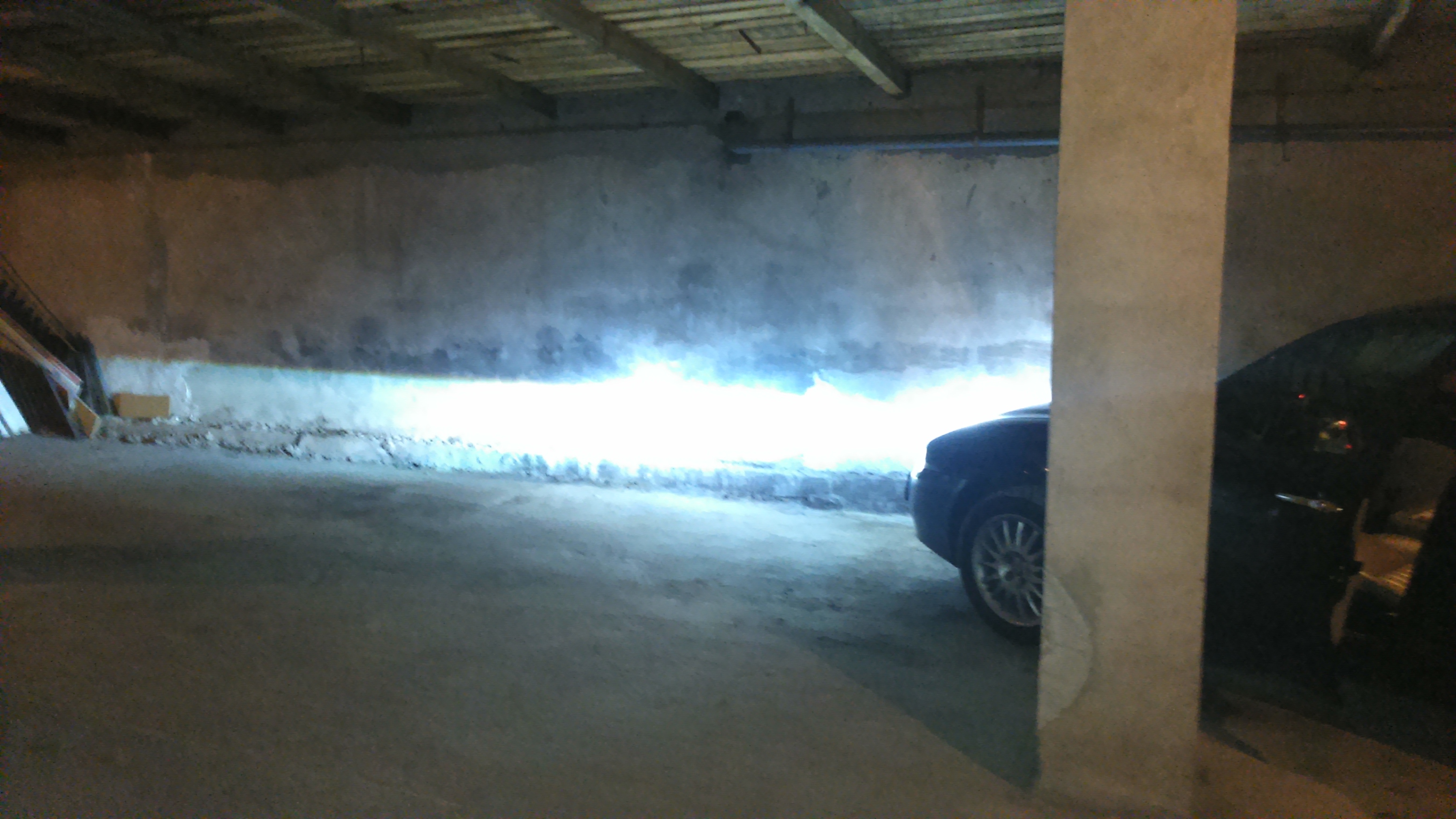 Pierwsze zdjęcie cyknąłem, przy wyłączonym świetle w garażu, i tak to wygląda nocą