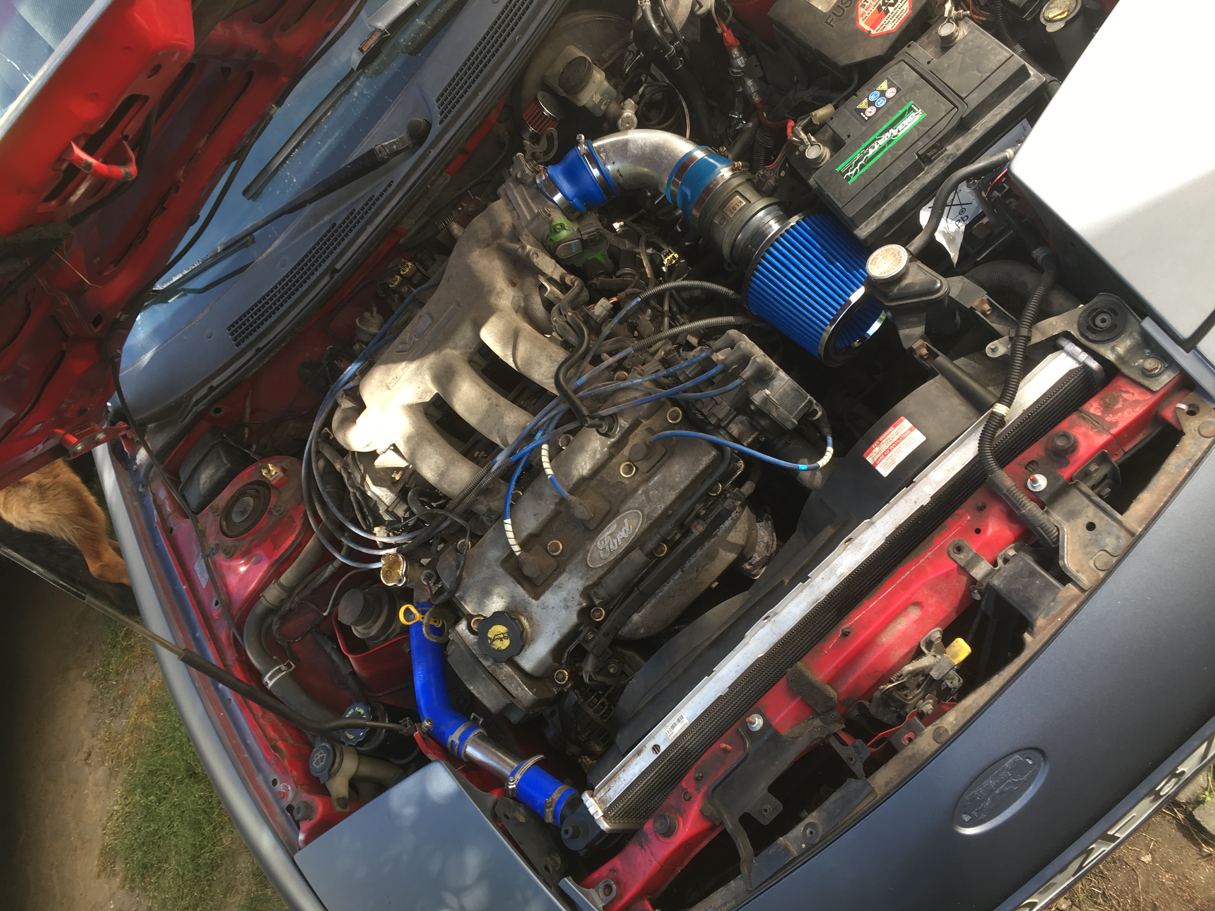 Poprawiłem górny wąż od wody bo stary wyglądał koszmarnie a przy okazji trochę niebieskiego wpadło pod maskę.