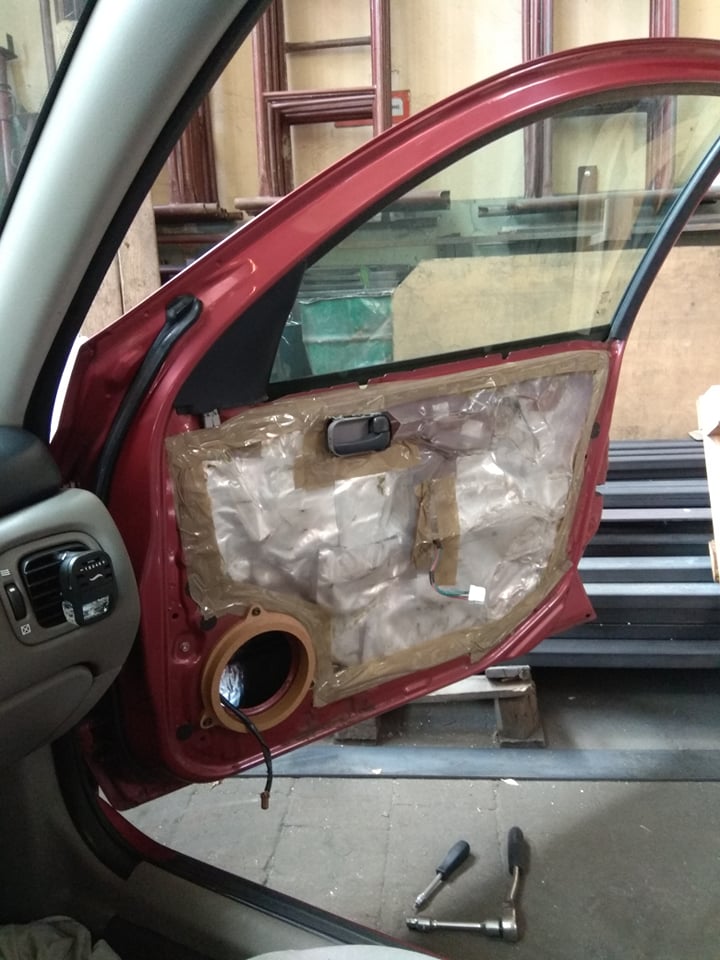 Wygłuszyłem drzwi i zamontowałem zestaw głośników .