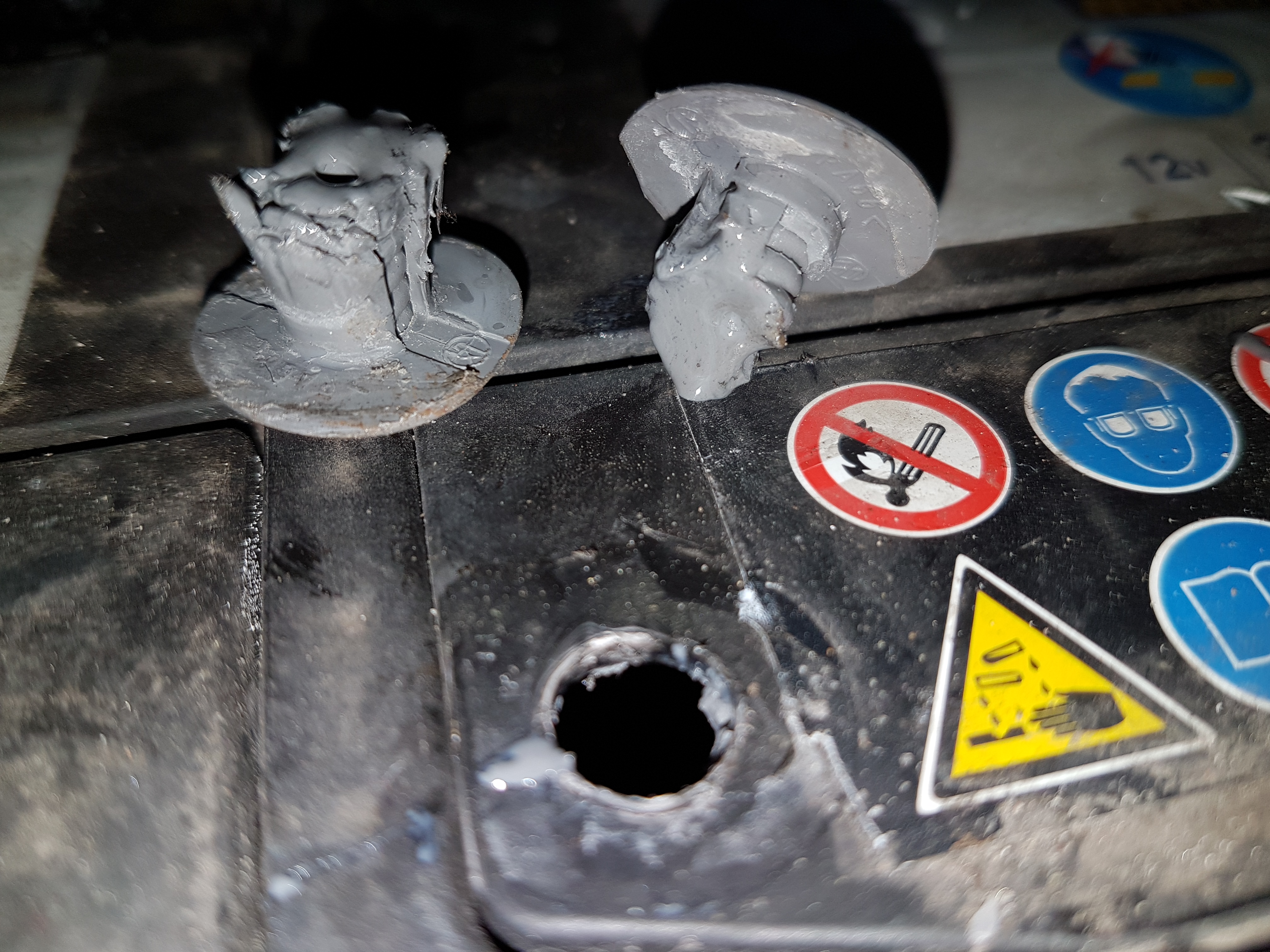 Niestety okazało się podczas demontażu korków, że kołki od tapicerki nie spełniają swojego zadania bo ich materiał nie jest odporny na działanie elektrolitu-zaczęły się po prostu "lasować".
