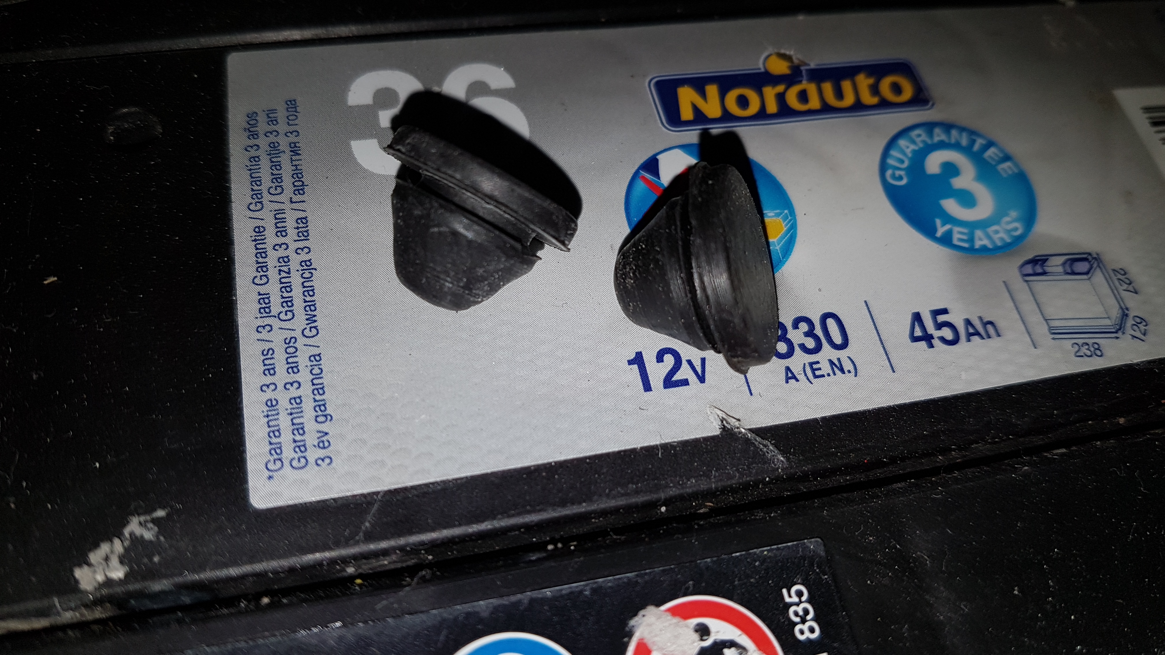Aktualnie jak wyżej o akumulatorze pisząc wstawiłem w otwory takie oto zaślepki gumowe: