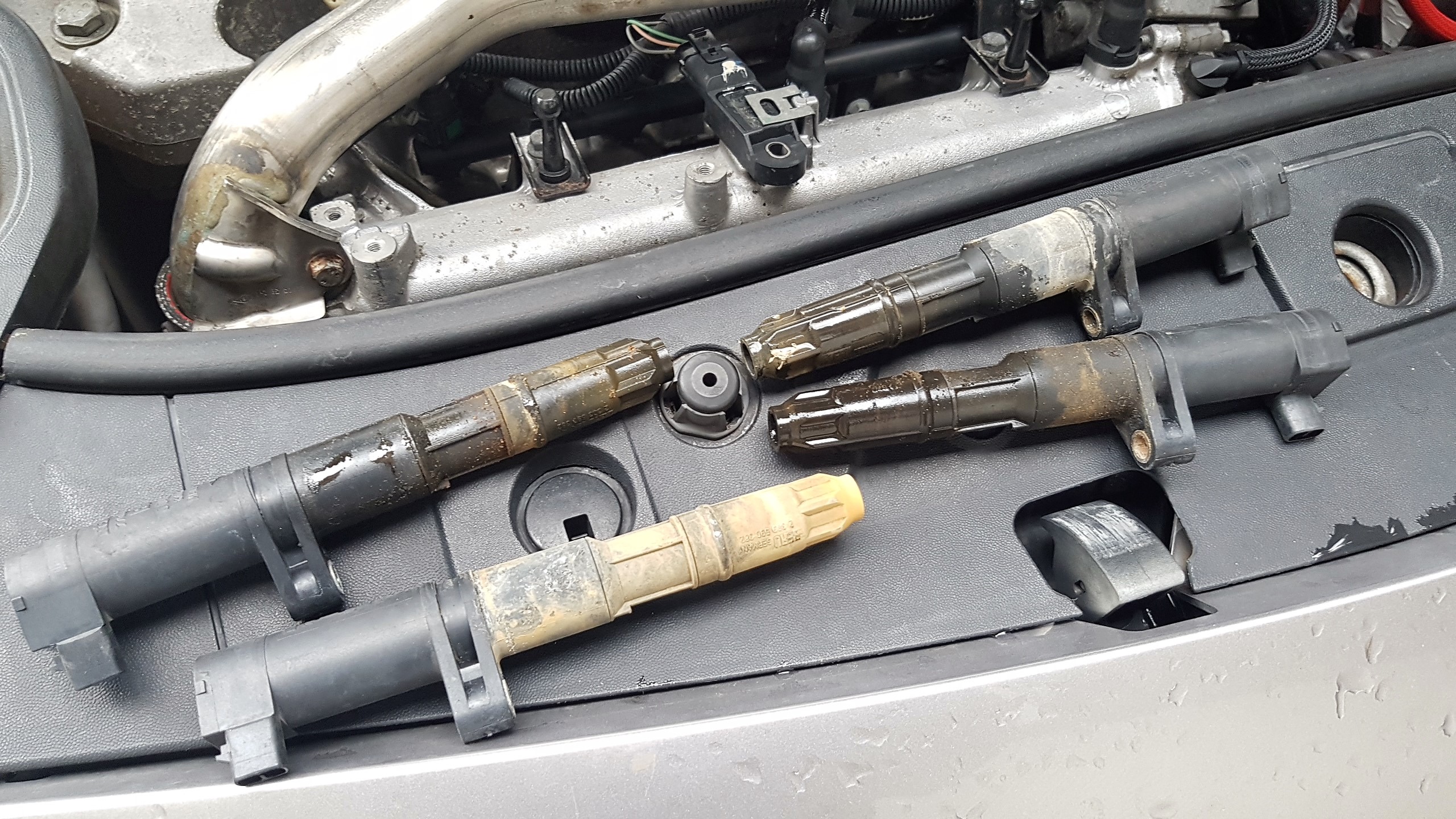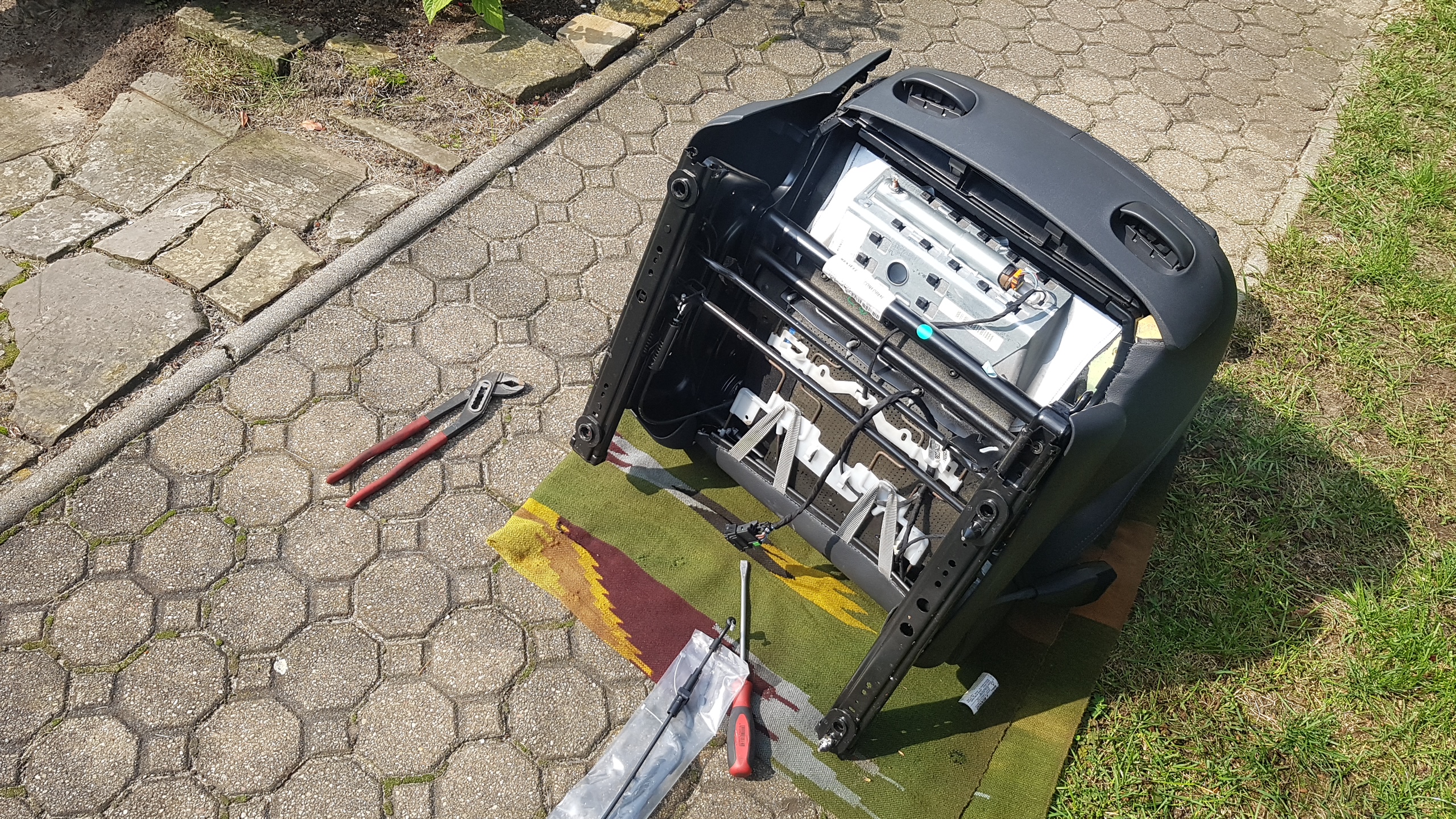 Na początku września trochę mi przeszło (choć włosy nie odrosły) i próbowałem coś przy samochodzie zrobić – umyłem, odkurzyłem, napompowałem koła, usunąłem drobne usterki w rodzaju zalanych cewek, sparciałej odmy i złamanej linki fotela pasażera: