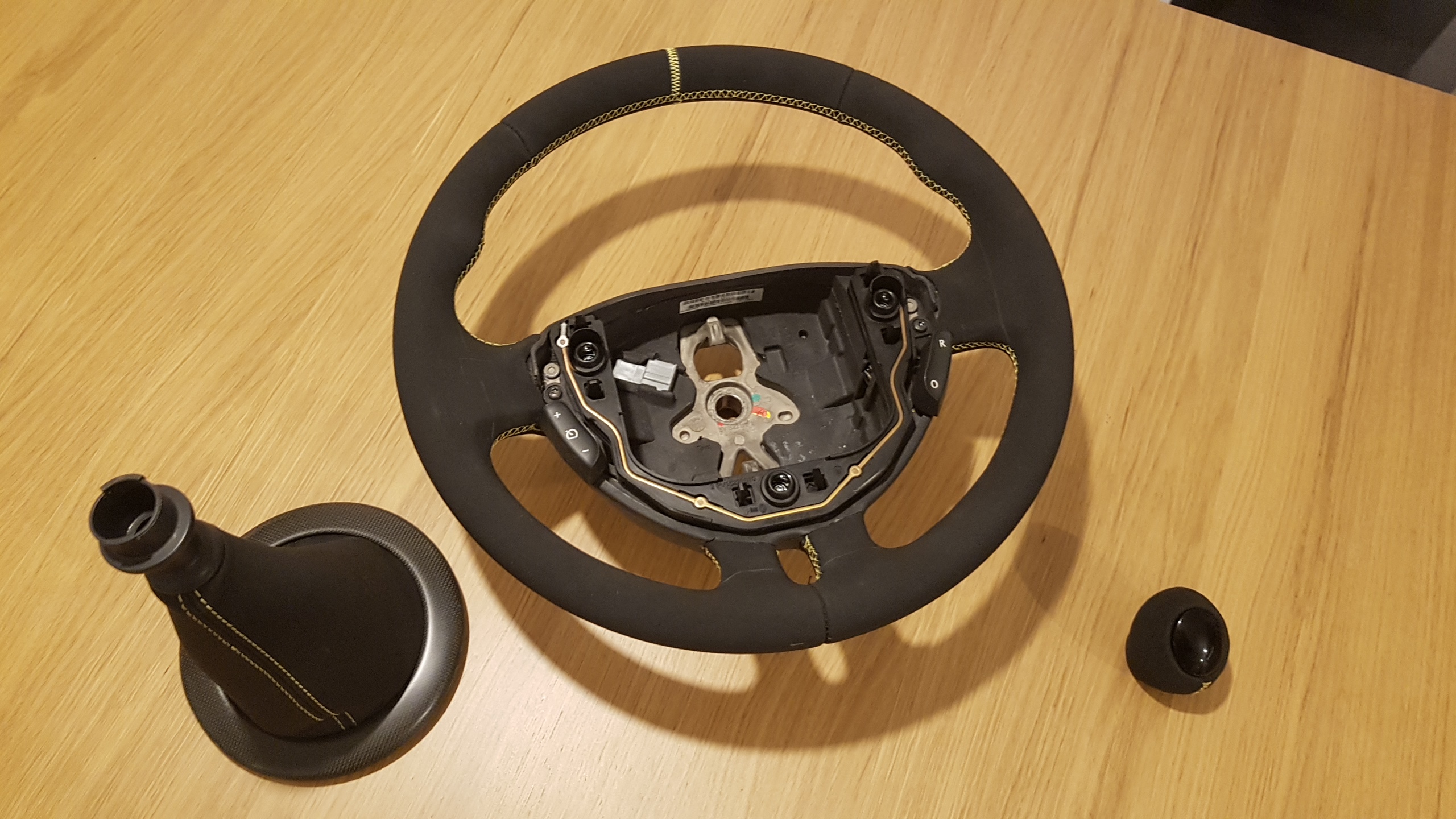 Potem oddałem kierownicę, mieszek i spuchniętą gałkę zmiany biegów do obszycia: