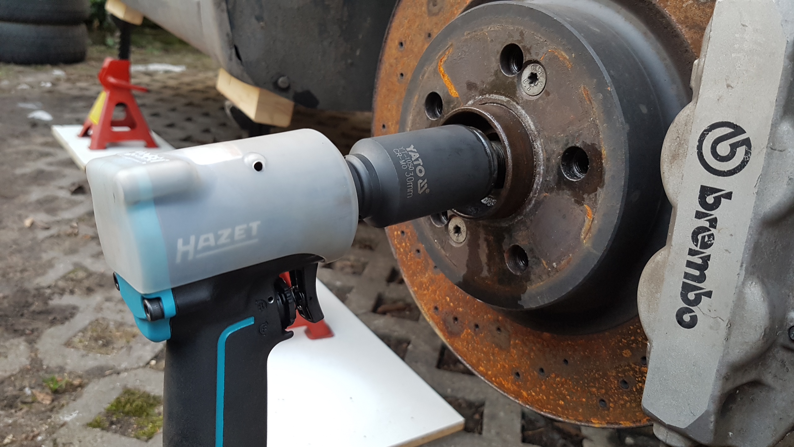 BTW: Mini kluczyk bez większego wysiłku dał radę odkręcić nakrętkę półosi: