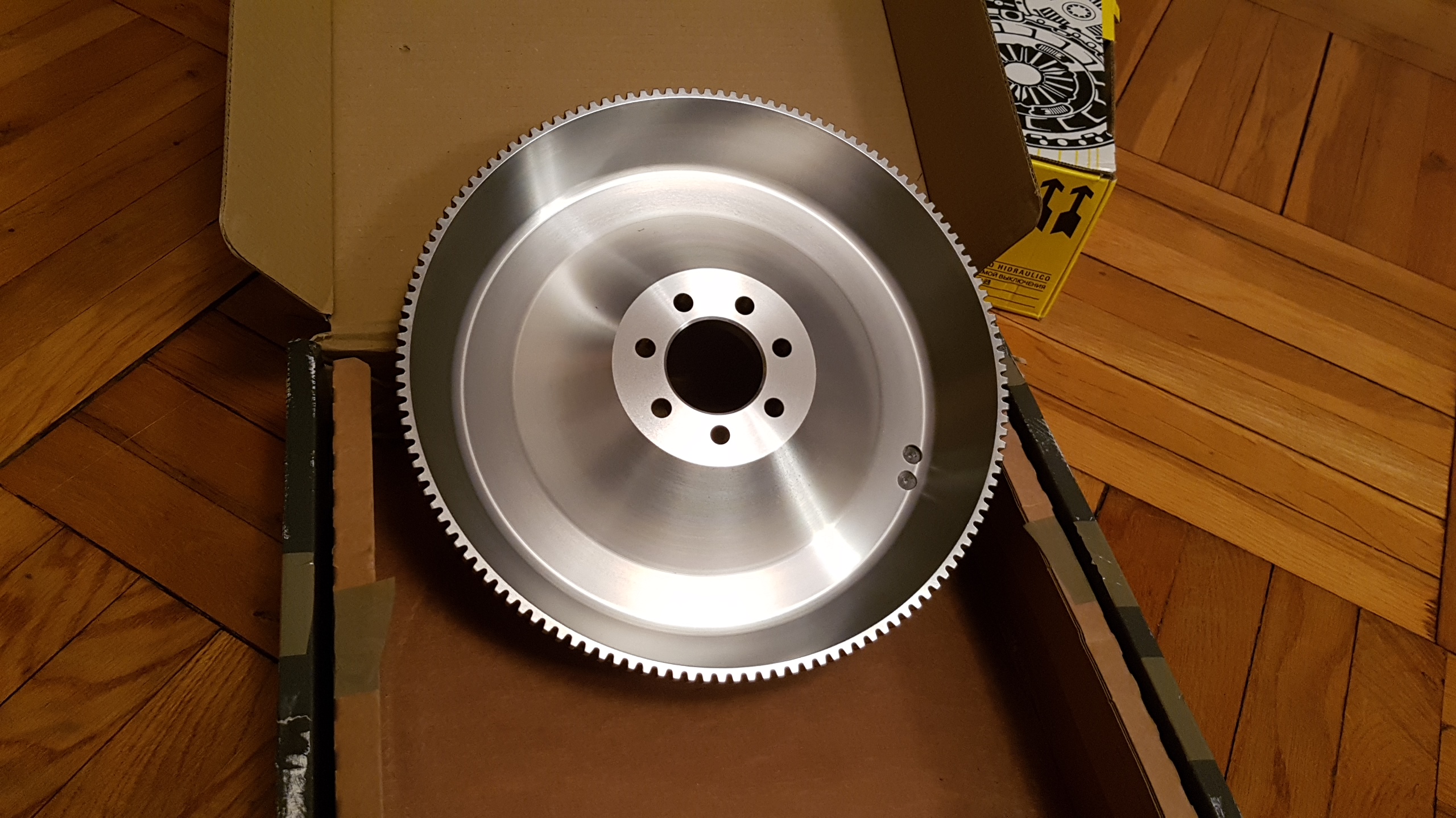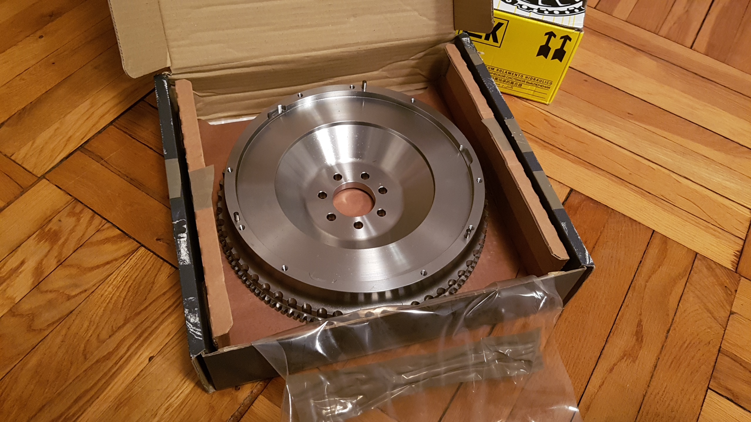 Co prawda nie musiałem, ale skoro trzeba zrzucić skrzynię, zdecydowałem się dołożyć dwumasowe koło zamachowe w wykonaniu dla ubogich, od TTV Racing: