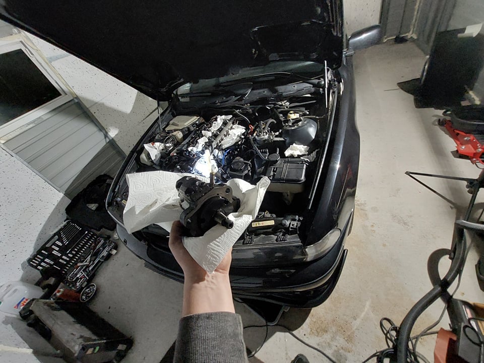 Wytargalem pompę CR, oczywiście nie bez bólu. Miałem kilka podejść do wyjęcia jej. Pierwsza przeszkoda to węże wodne, a druga to kapsel w pokrywie rozrządu.