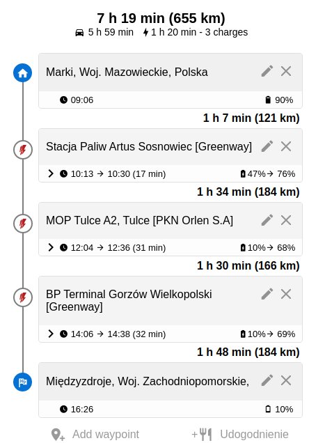 Piwo – jak najbardziej – jest nieco bardziej uciążliwie ale nie na tyle by była to tragedia. Dla mnie konieczność zatrzymania się na 20 minut i podładowania nie tragedia. To że na miejsce dojadę godzinę później nie robi mi specjalnie różnicy, biorąc pod uwagę, że czas spędzam wtedy z rodziną a w ciągu miesiąca więcej czasu zaoszczędziłem nie wjeżdżając na stacje paliw.