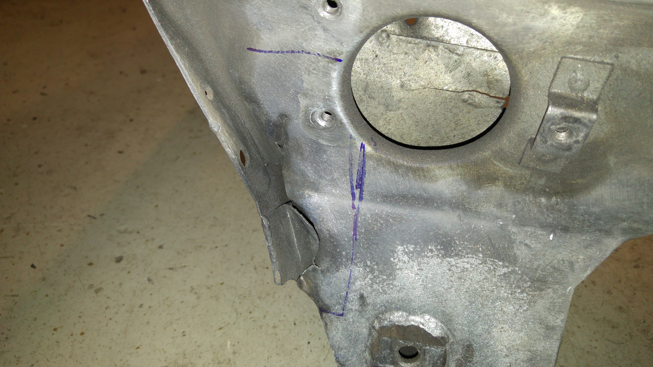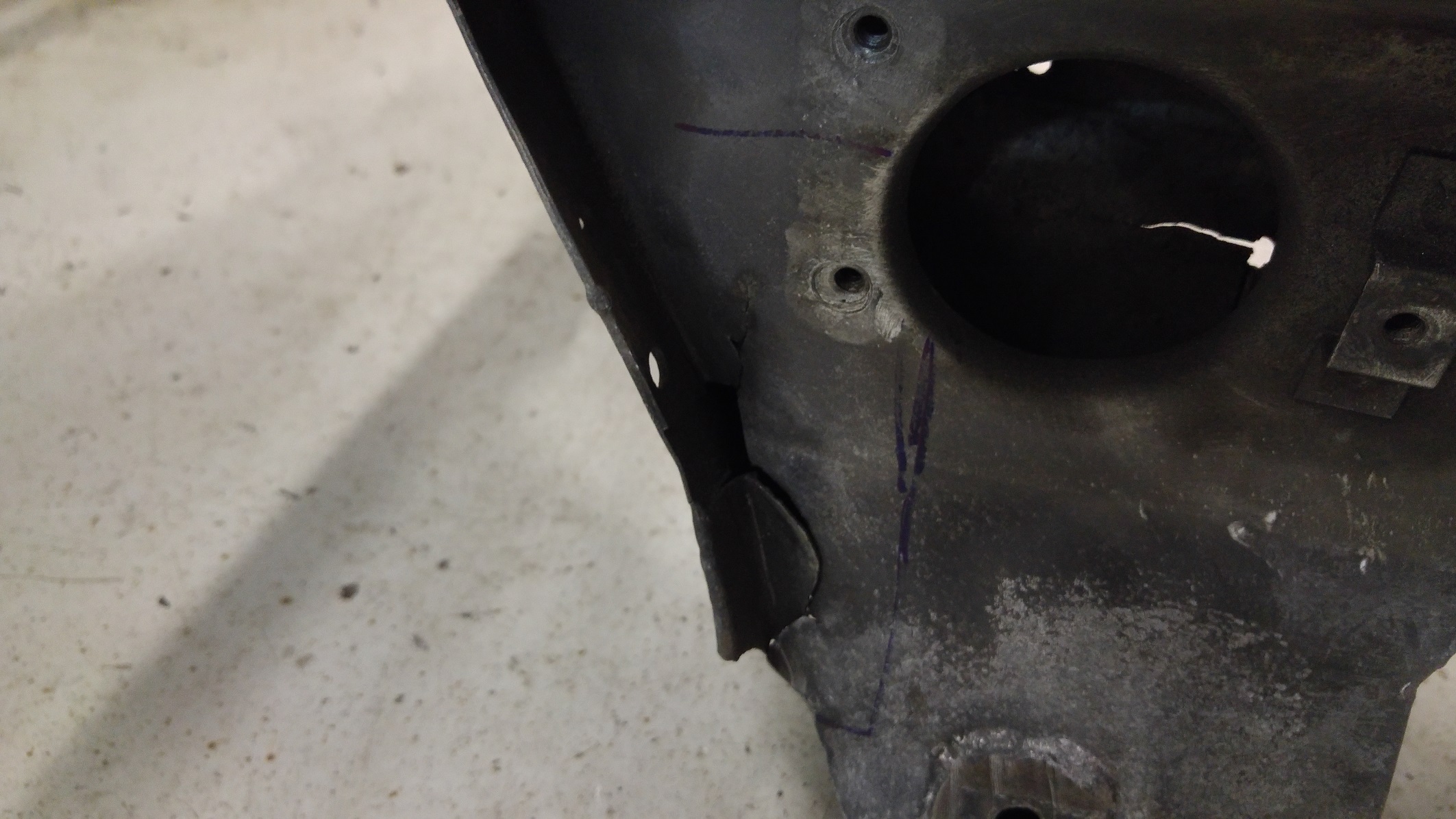 -pękniety otwór z gwintem, gdzie przymocowana jest łapa silnika od strony grodzi-nie wiem co z tym fantem zrobić.