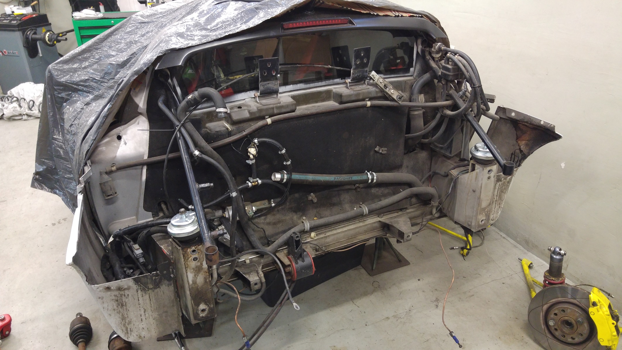 Wszystko zaczyna sie od początku...auto już odstawione do warsztatu i myślę, że do końca kwietnia się wyrobię. Silnik zawieszenie, cała rama pomocnicza musiała wylecieć. Wszystkie mocowania silnika będą wykonane z materiału o nazwie DOMEX700, przez co będą 2,5 raza wytrzymalsze od stali, a wagowo zbliżone do aluminium. Rama pomocnicza będzie naprawiona( wyspawana z dodatkowymi zastrzałami zwiększającymi sztywność tyłu. Dodatkowo będą wycięte niepotrzebne metalowe części. Silnik zostanie przesunięty do grodzi jeszcze o jakieś 3cm. Speedster dostanie cały nowy wydech, bo stary nadaje się tylko na śmietnik, zostały sparowane 1 z 2 cylindrem i 3 z 4... Teraz bedzie 4-1 tak jak na hondę przystało. Bagażnik wyleci, a w zamian tego będą tam rury od wydechu. Wyleci również wygłuszenie, i milion innych pierdół, które są nie potrzebne. Seryjny zbiornik także prawdopodobnie powie papa, a w zamian niego wleci homologowany FIA ATL40L w nogach pasażera. Na dniach będę miał info co z homologowana klatką SAFETY DEVICES, którą trzeba ściągnąć z Anglii przez dystrybutora w Belgii i poskładać to w Polsce:) Jest plan żeby w 2016 wystartować w WSMP <diabełek> zobaczymy co z tego wyjdzie. Poniżej kilka fotek z prac.