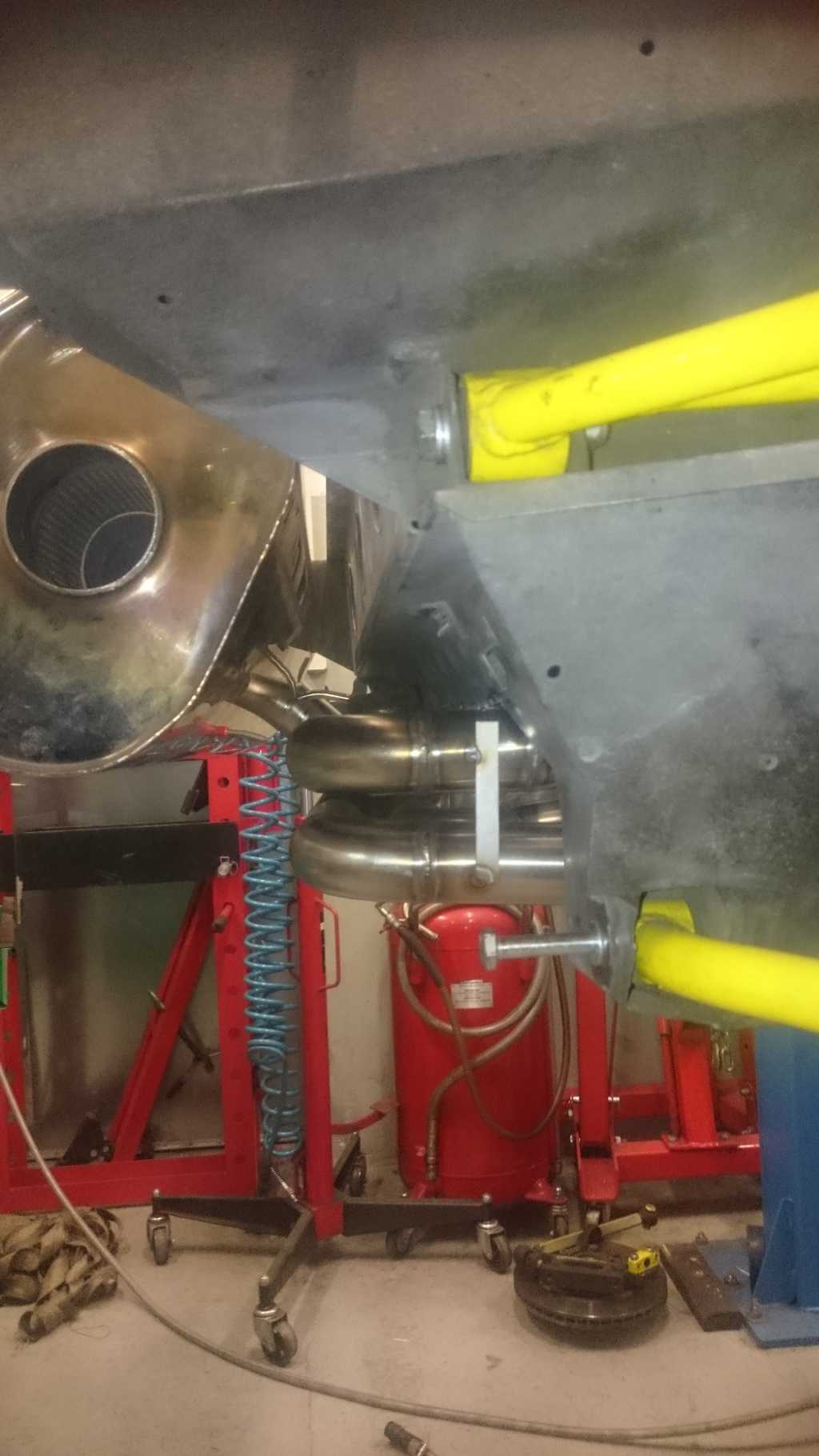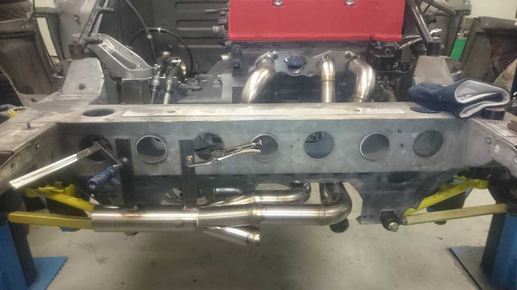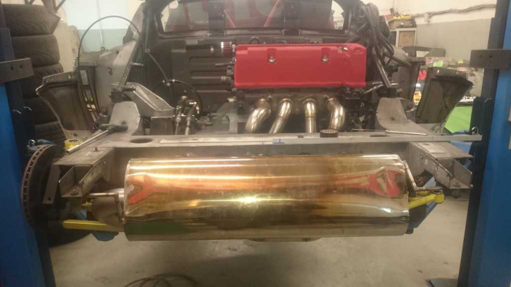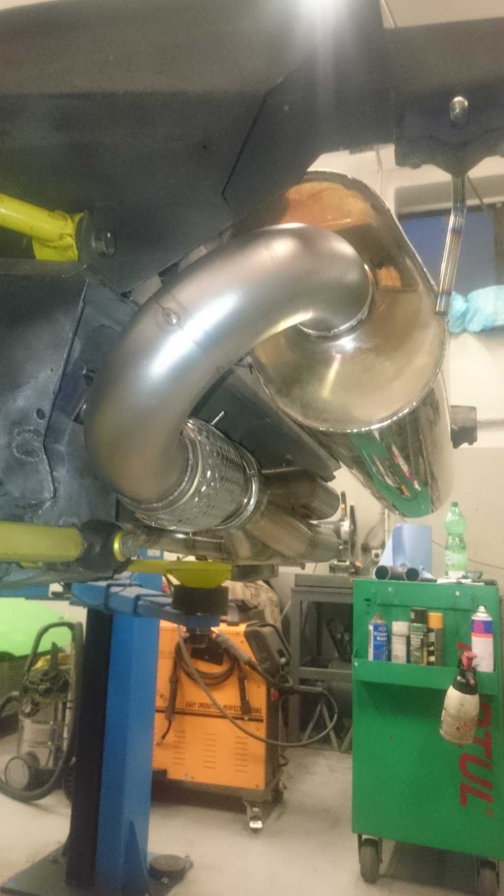 Wydech juz w 95% pospawany, moim zdaniem wyszlo genialnie. Wszystkie spawy były wykonywane w osłonie gazowej, wiec w srodku nie ma zadnych bobli wystających, ktore zakłócały by przepływ spalin ( jest to ułamek strat, ale ziarnko do ziarnka...). Katalizator udało sie zreanimować, wiec zostanie uzyty ponownie i będzie on umieszczony za tylnym tłumikiem, na samym koncu wydechu. Dodatkowo zakręt od plecionki do tłumika przelotowego bedzie o 63mm bliżej, a co za tym idzie nie będe musiał uzywać zadnych dystansów, aby mi nie spłoneła opona.... Oczywiście cały wydech będzie owinięty bandażem o gr 2mm, żeby ograniczyć emisję ciepła. Z plusów sonda lambda jest w koncu na wspolnej rurze, wiec afr bedzie z 4 cylindrów, a nie z 2 tak jak było dotychczas, pewnie AFR jakoś zbytnio sie nie zmieni, ale jest przynajmniej tak jak powinno być:) W katalizatorze zostaną wspawane 2 krócce na wejsciu i na wyjsciu, w razie badań technicznych na WSMP ( wkładaja druciki i sprawdzaja czy jest wkład w srodku, a nie sama puszka w innym wypadku musiałbym demontować cały wydech:) )