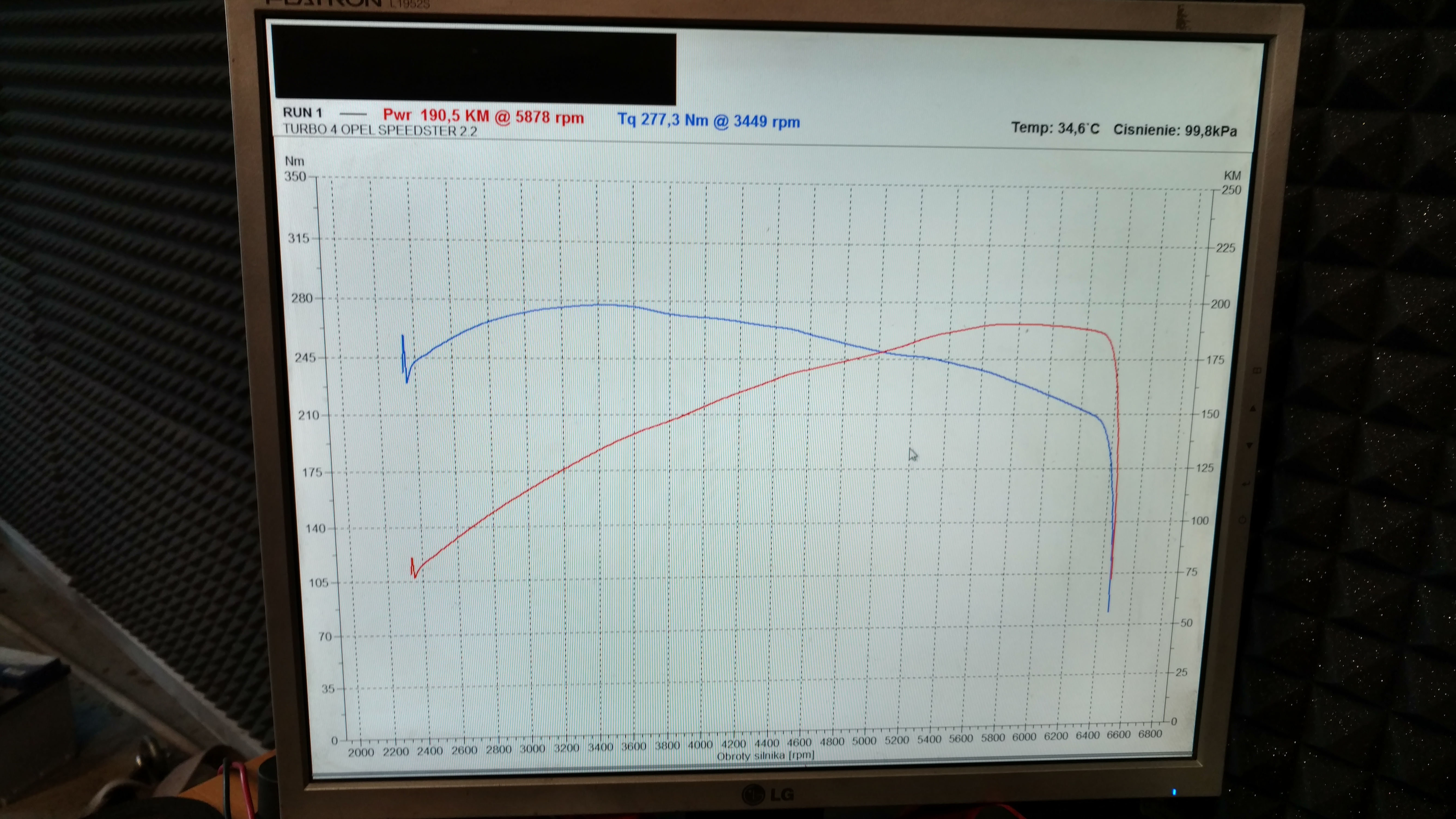 maksymalny wynik jaki osiagnelismy na hamowni ale zeszlismy z moca nizej ostatecznie ze wzgledu na wysoki afr to:
