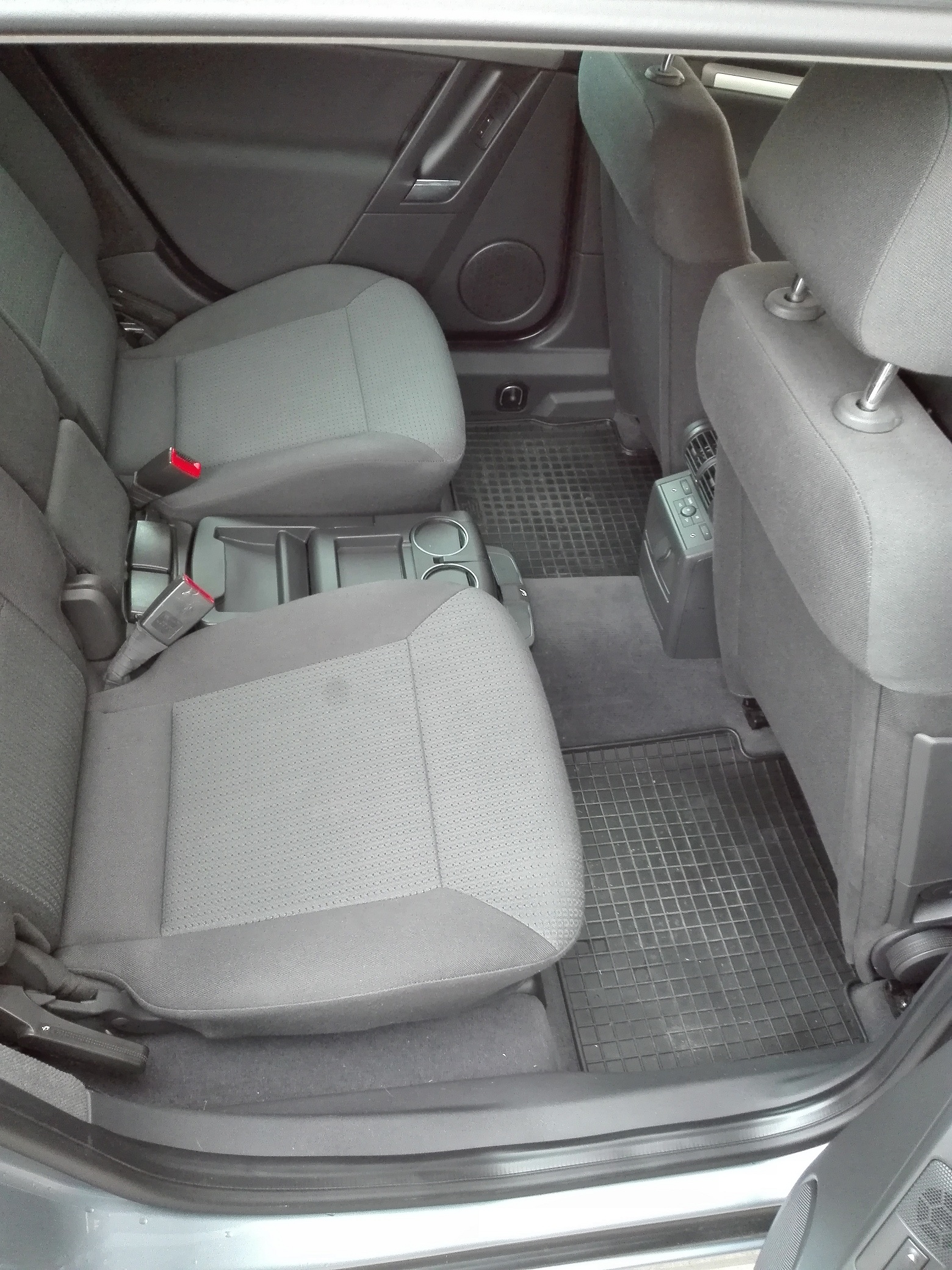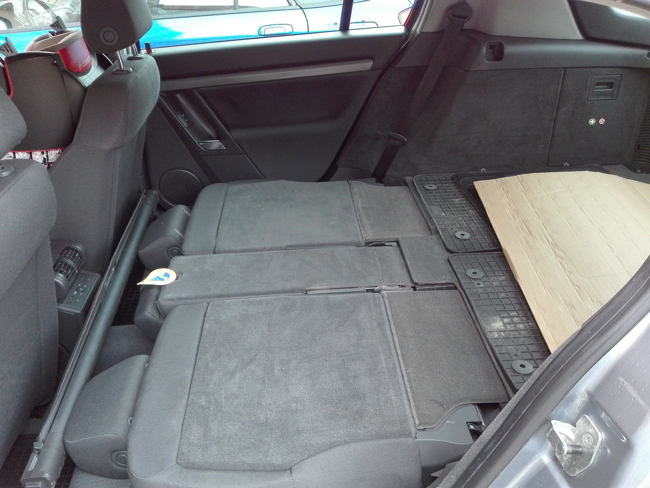 Proszę bardzo, zdjęcia wnętrza. Przód szału nie robi normalna Vectra C za to za przednimi fotelami jest istota tego modelu. Miejsca na nogi jest chyba najwięcej w tej klasie i śmiało koszykarz czy siatkarz siądzie wygodnie bez bólu nóg nawet w długą podróż. Po banalnie prostym zabiegu składania siedzeń mamy równiutką powierzchnię z bagażnikiem co jest mega praktyczne. Jak widać dziecko trafiło na miejsce piątego pasażera gdzie zostało zagospodarowane mini siedzisko a po obu stronach spokojnie sądzie dorosła osoba. Na zdjęciach tylne fotele są odsunięte max ale nawet w takiej konfiguracji miejsca w bagażniku jest dość dużo. Pierwszy raz demontowałem roletę bagażnika i jest banalnie prosta w obsłudze.