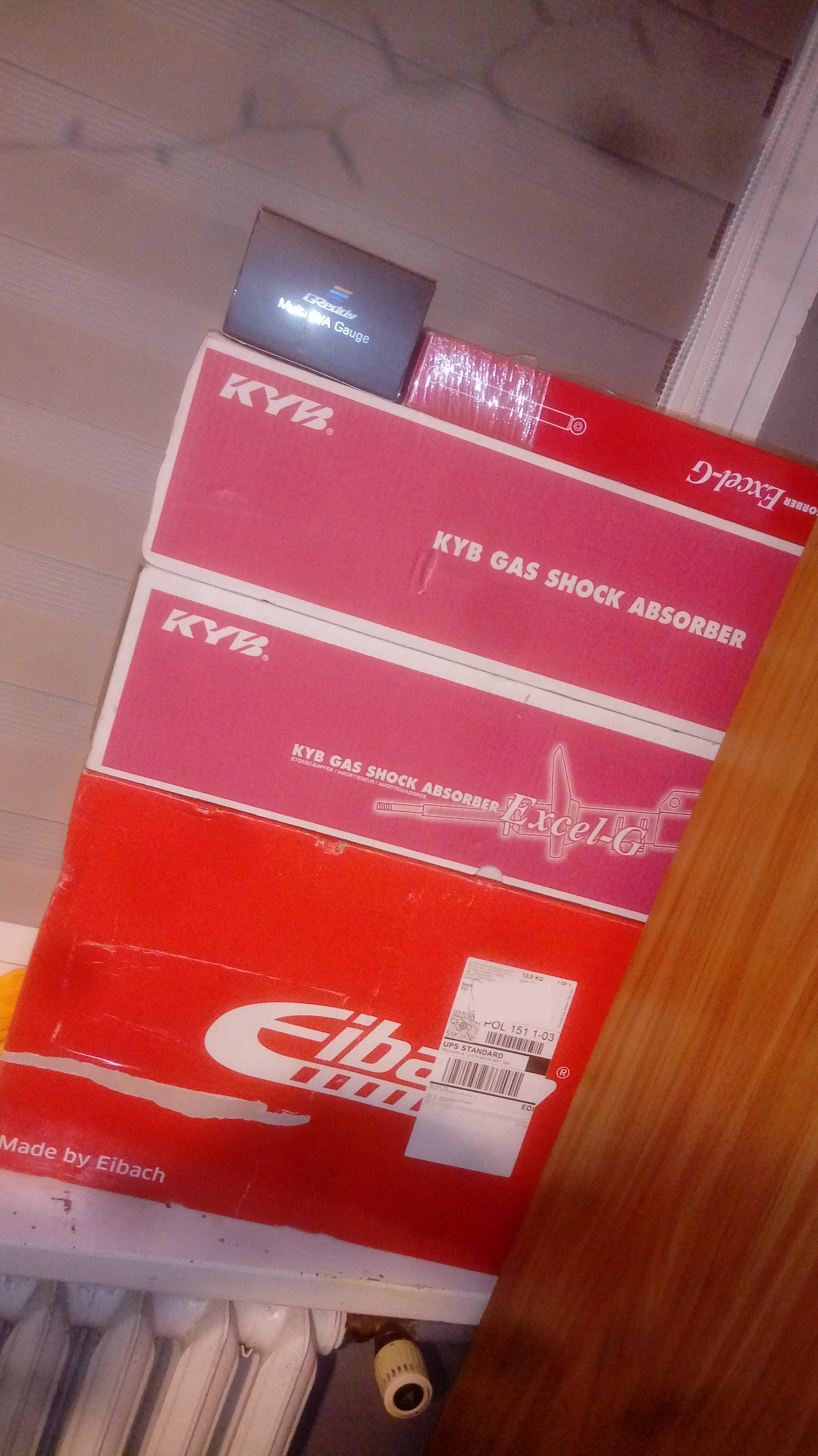 Powoli szykuję się do wiosny także wpada calutki nowy zawias. KYB od wersji AERO + Eibachy do wersji kombi ze względu na to że dają obniżenie -30/15mm a przez duża butlę tył siedzi teraz okrutnie. Jeszcze muszę domówić łożyska, mocowanie i osłony do przednich amortyzatorów. Także będzie sztywniej i pewniej, mniej kanapowato <serduszka> Wleci też wskaźnik doładowania GReddy dla bajeru i do pomiarów, w przyszłości pewnie wleci jeszcze wskaźnik EGT i temperatury oleju.