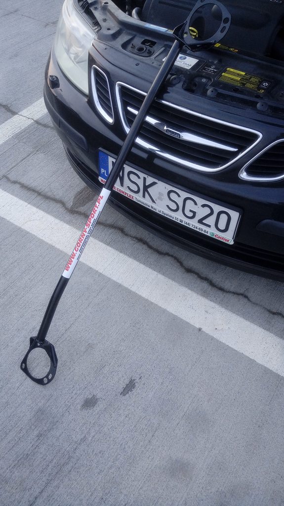 Wpadł kolejny fant do Saabiny, mianowicie rozpórka od p. Irka. Auto prowadzi się teraz znacznie pewniej, jest mniej takie "kluchowate" :D