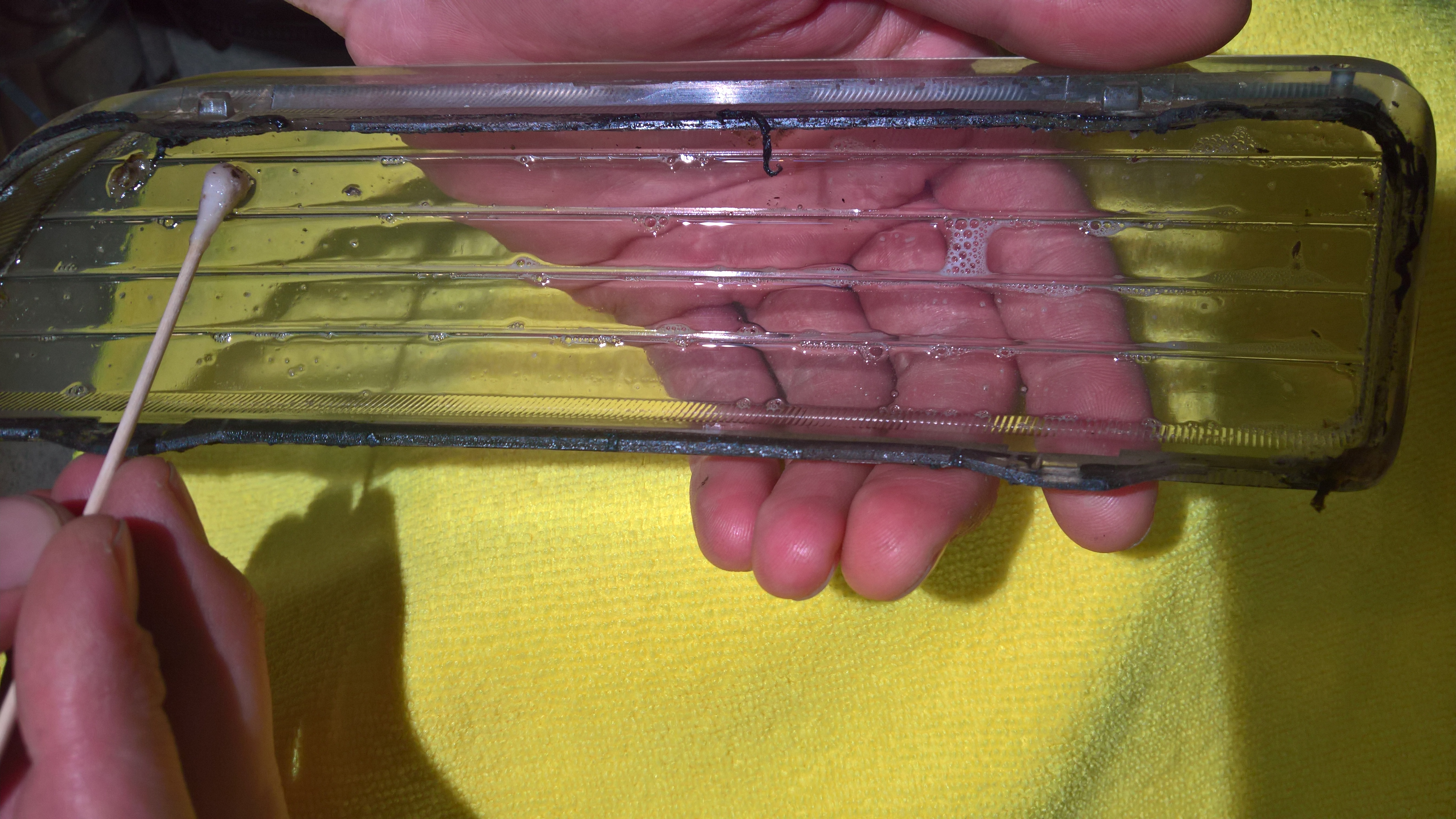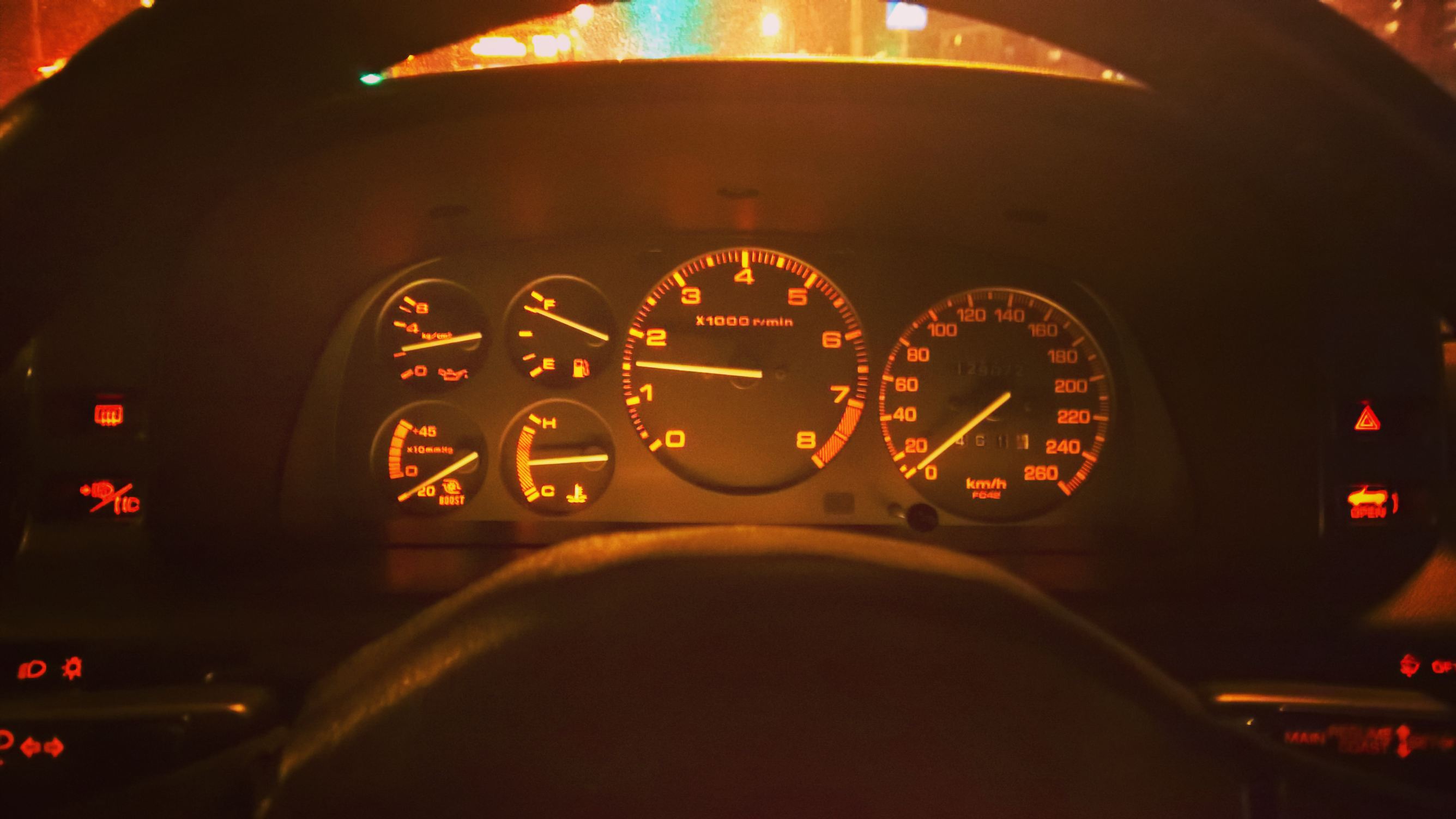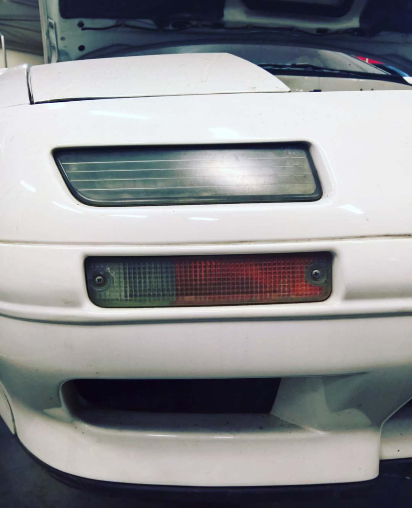 Zagościła radość, Mazda RX7 odzyskała życie! Nie było osoby, która by się nie uśmiechała na ten widok :) Zatem w drogę! Ale zaraz, jeszcze kończymy czysczenie kierunków i świateł pozycyjnych – pamiętacie ze zdjęć powyżej jakie były brudne... Przypomnę:
