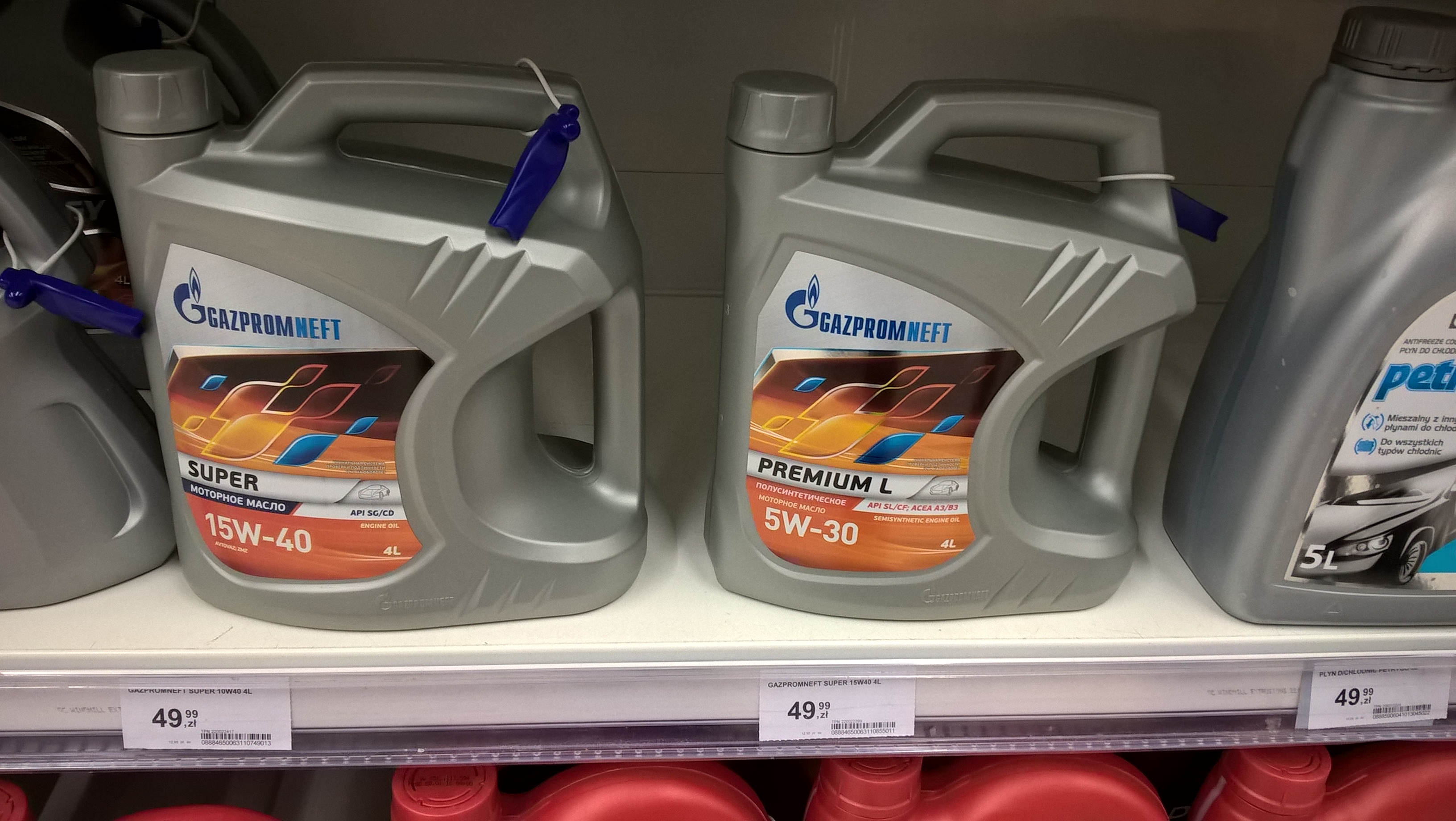 Niestety nie mogłem sprawdzić na czytniku ceny oleju 5W30. Obok stały jeszcze oleje G-Energy, które to okazują się być również dziełem koncernu Gazprom.