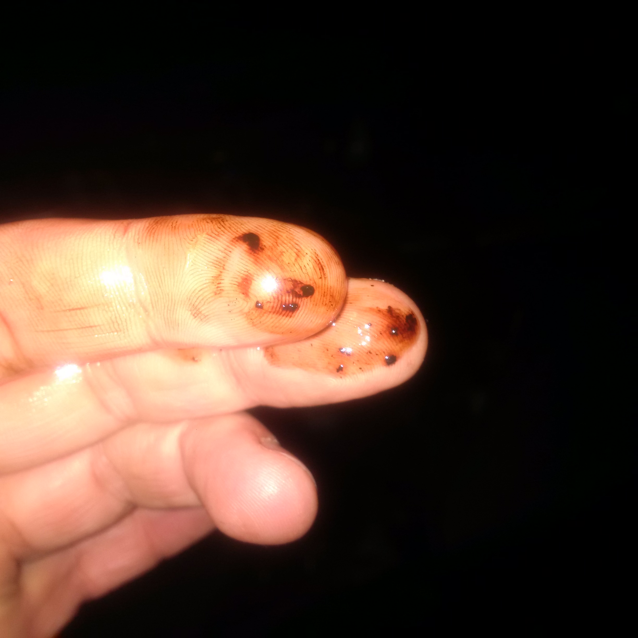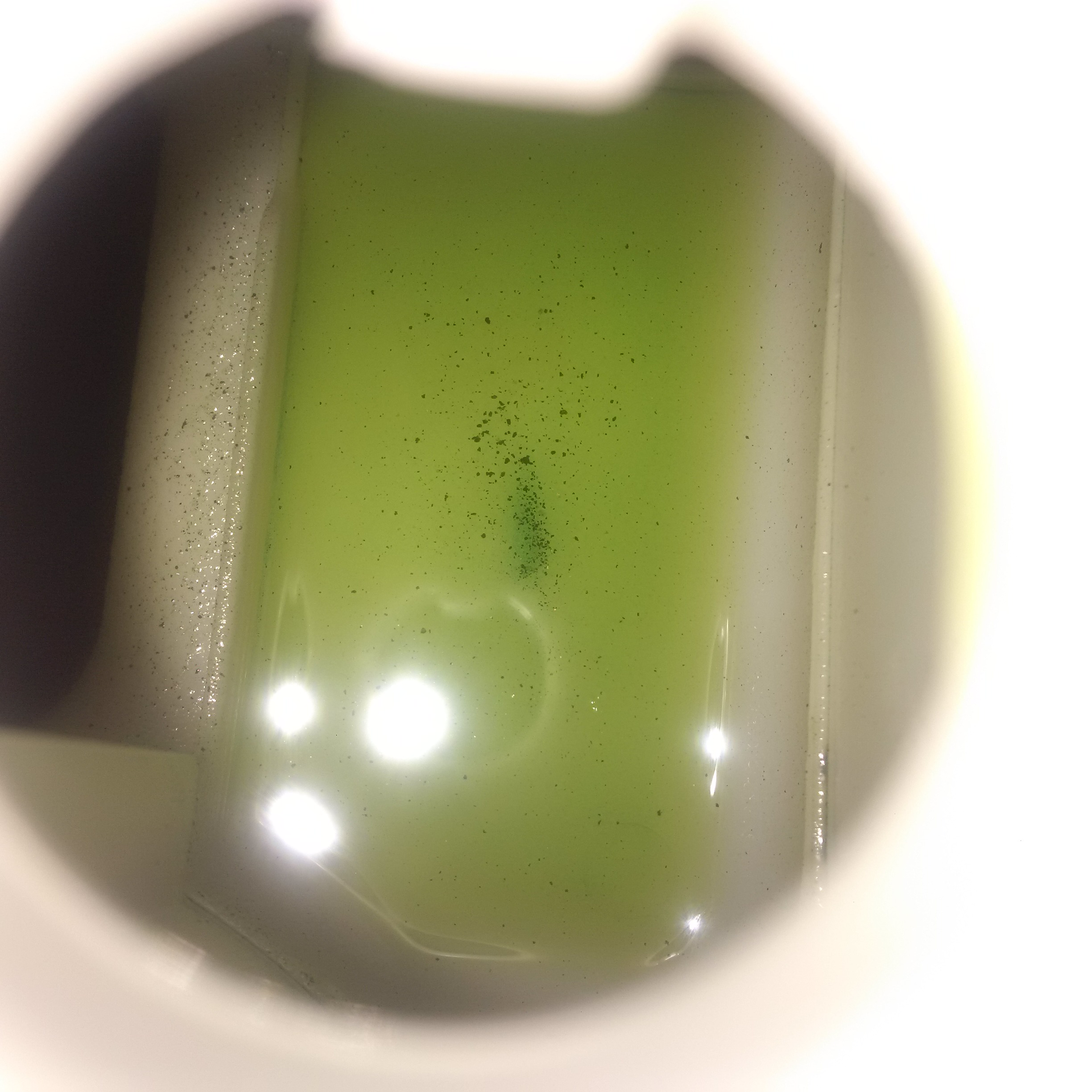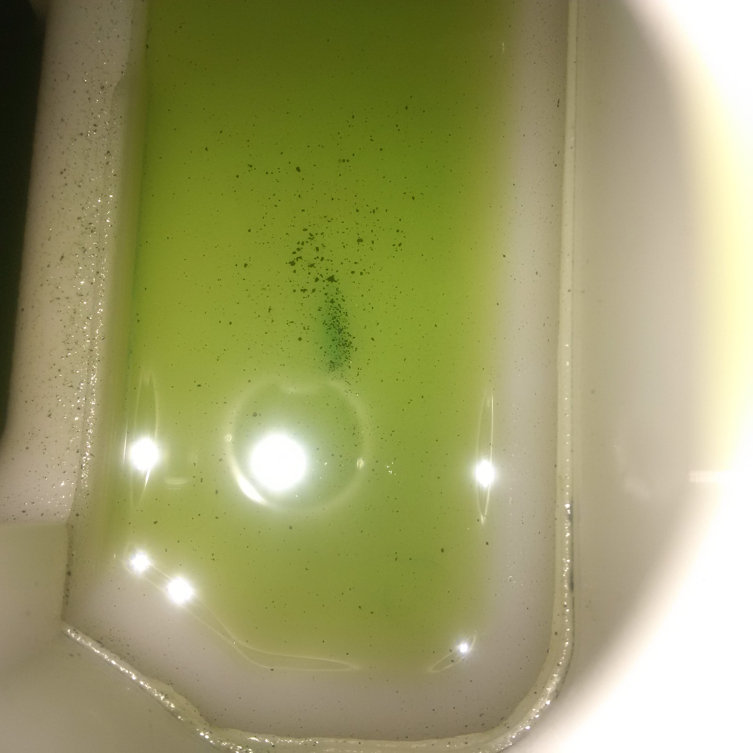 Opiłki w plynie hmm moze gaziarz mial pojemnik "brudny" i wlał jak leci :P