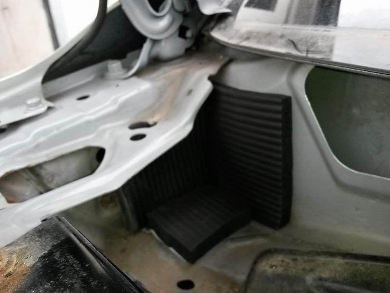 Użyłem na podłodze i pod deską materiału znanego z allegro o nazwie POROSO. Podszybie od strony zewnętrznej zrobiłem pianką NBR – ma dobre właściwości tłumiące i jest prawie na wszystko odporna. Mniejsze otwory zakleiłem taśmą dekarską. Po zdjęciu plastikowego i metalowego podszybia dopiero widać, ile tam jest otworów niezaślepionych, którymi hałas wpada do kabiny. Oczywiście nie można zaślepiać odpływów wody z podszybia, bo będzie niezła wanna po deszczu