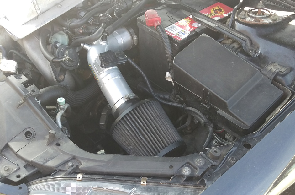 Dziś pod maską zagościł dolot K&N Typhoon. Oryginalnie przeznaczony do mazdy 3 mps, musiał zostać odrobinę przedłużony, żeby pasował do szóstki. Efekt zasysanego powietrza jest super! Kolejnym krokiem będzie odseparowanie stożka od komory silnika, prawdopodobnie będę próbował wykonać taką osłonę samodzielnie :–)