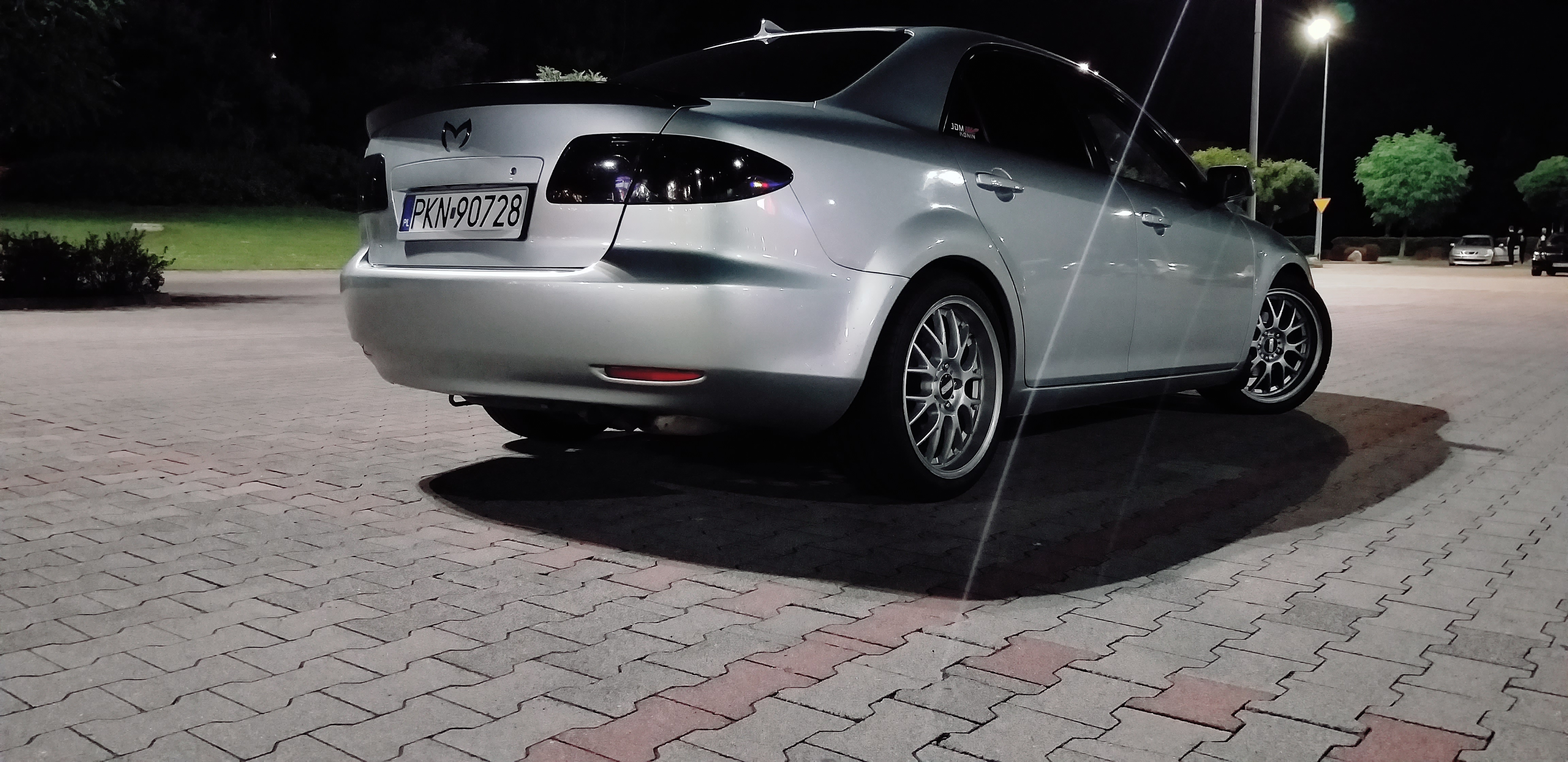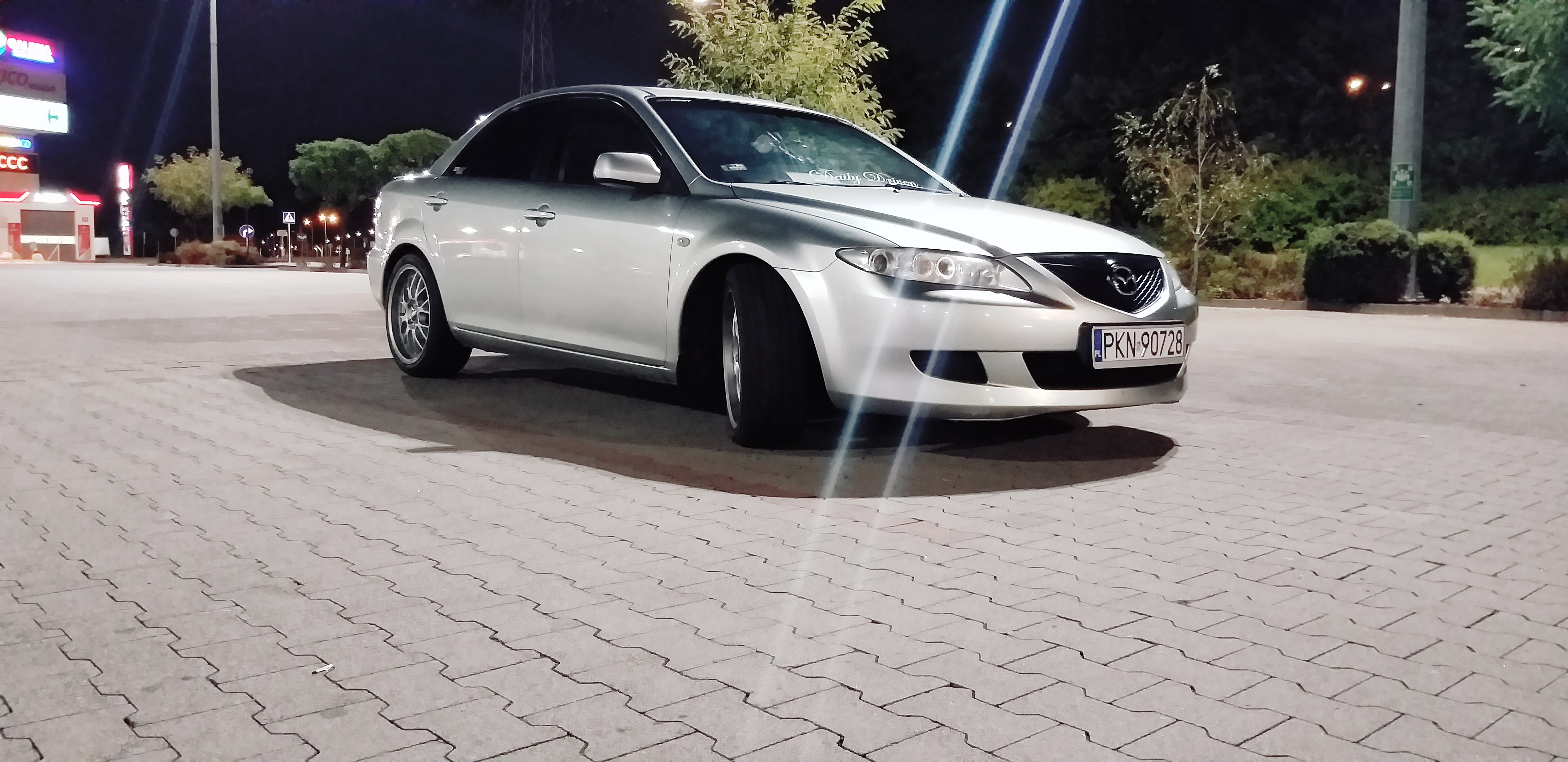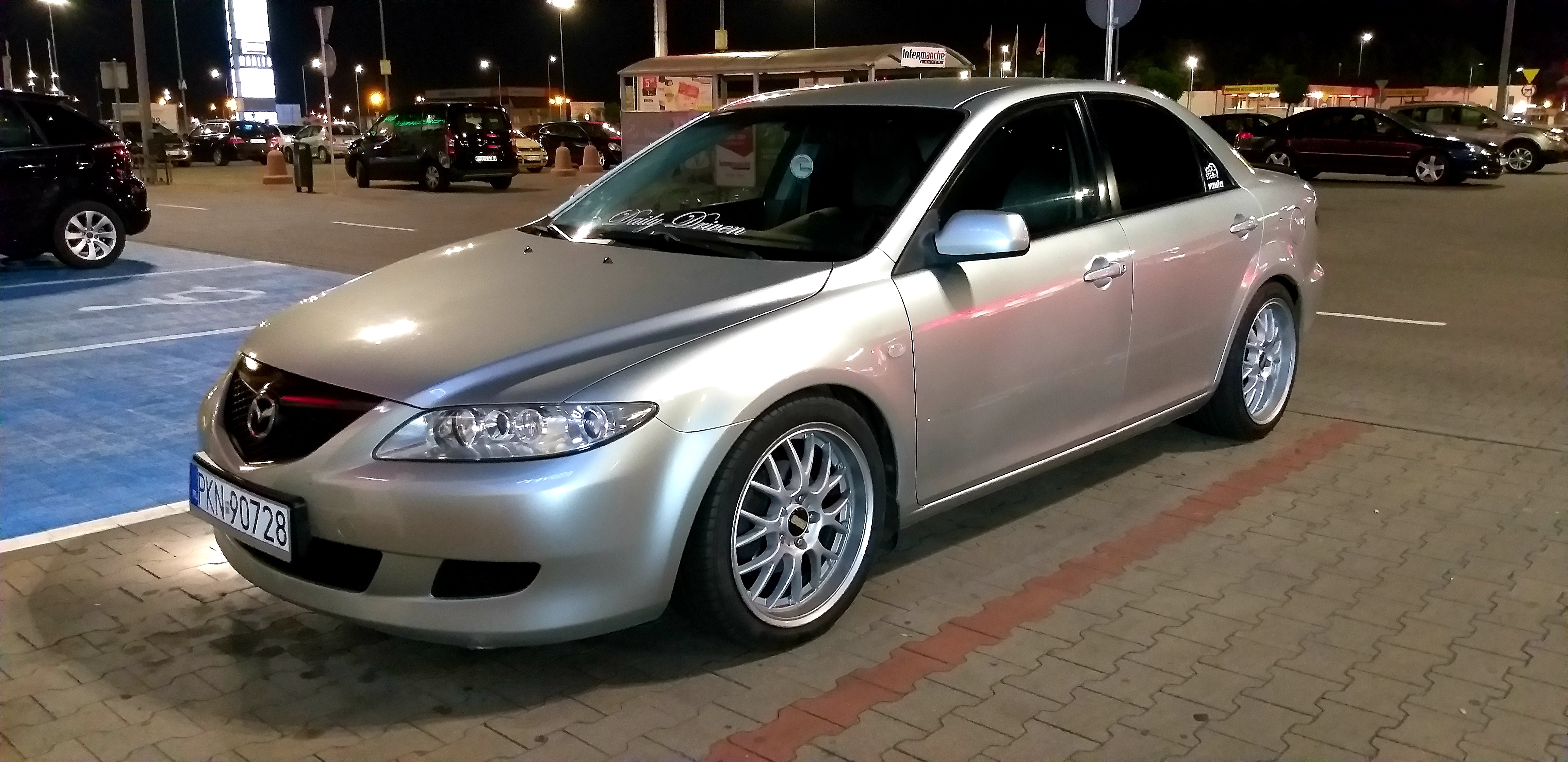 pytam jaki silnik a on że 2.0 Benzyna 141 koni... po tym jak u wiekszosci posiadaczy tych jednostek widzialem 2 wydechy zgłupiałem jak zobaczyłem u siebie taka mała rurke jak w maluchu... zapytałem raz jeszcze czy na pewno... sprzedawca nie powiedział jednak ze to był po prostu PrzedLift... a ja się aż tak bardzo nie znałem ale koniec końców zdecydowałem się na zakup w cenie 4 800 zł darował mi 200 zł i poszło na benzynke wyszło słoneczko w środku poczułem nutke komfortu i nagle... po 60km CHECK... no to świetnie powiedziałem sam do siebie.. dlatego był taki tani... ale jakoś to przełknąłem i dojechałem do domu okazało się później że została wspawana strumiennica Kata nie ma błąd będzie... już i tak się przyzwyczaiłem ... jeździłem 2 miesiace w pełni seryjnym samochodem w dodatkun srebrnym na 15 calowych alufelgach myśląc że patrzy na mnie cały Konin siedzac w zwykłej Mazdzie 6 ktora po zaparkowaniu przy Galerii stała co 3 wóz ... wiec musiałem coś z tym zrobic w ruch poszedł laptop i wrzuciłęm post na grupie majacy na celu dowiedzenie się czegoś o tym samochodzie ..pierwszy napisał do mnie Mariusz Dejneka którego z resztą pozdrawiam... mówił na początku o sprężynach Obniżających .. od słowa do słowa wszystko juz wiedziałem..a ja oczywiscie podniecony zacząłem szukać od razu po odłożeniu słuchawki ..Mariusz mówił H&R -30mm/-35mm zależy jak usiądzie ale od KOMBI .. znalazłem ! 250zł używane kupione założone ... przód bajka zakochałem sie tył..wisi... okazało się że się z kolegą nie zrozumiałem ponieważ usłyszał on że posiadam instalacje LPG i dlatego sprezyny od kombi sprawdza się idalnie ponieważ u niego tak wlaśnie jest i siedzi idealnie... zmieniłem na oryginalne ... kupiłem 3miesiace pózniej felgi ASA REVOLUTION 18' na oponie 45/215 wyglądało obłednie ale Mariusz mówił ze KOZA weźcoś z tym zrób.. sprzedałem H&R kupiłem sprezyny firmy JAMEX służą mi do dziś dobre wydane 400zł