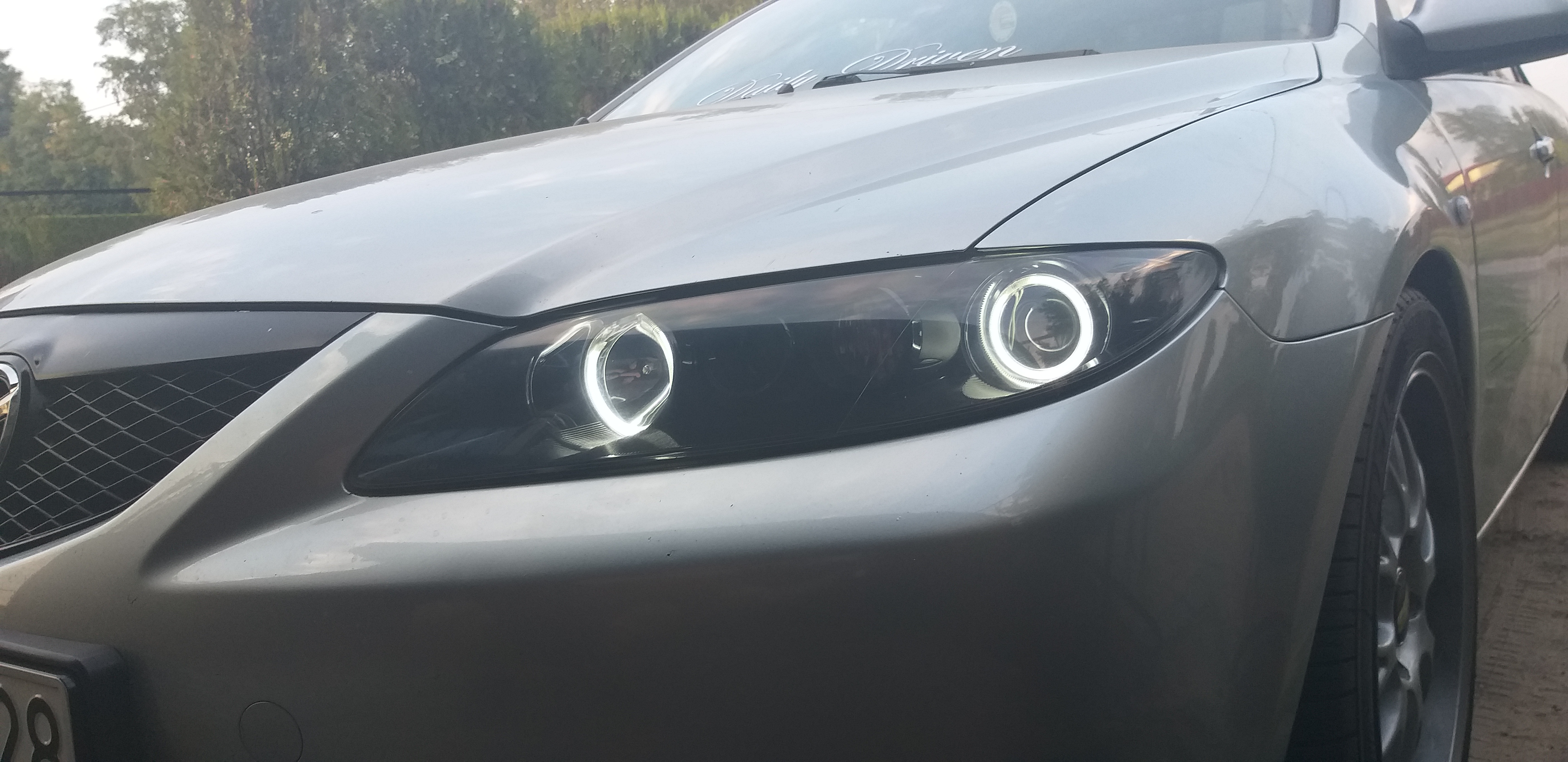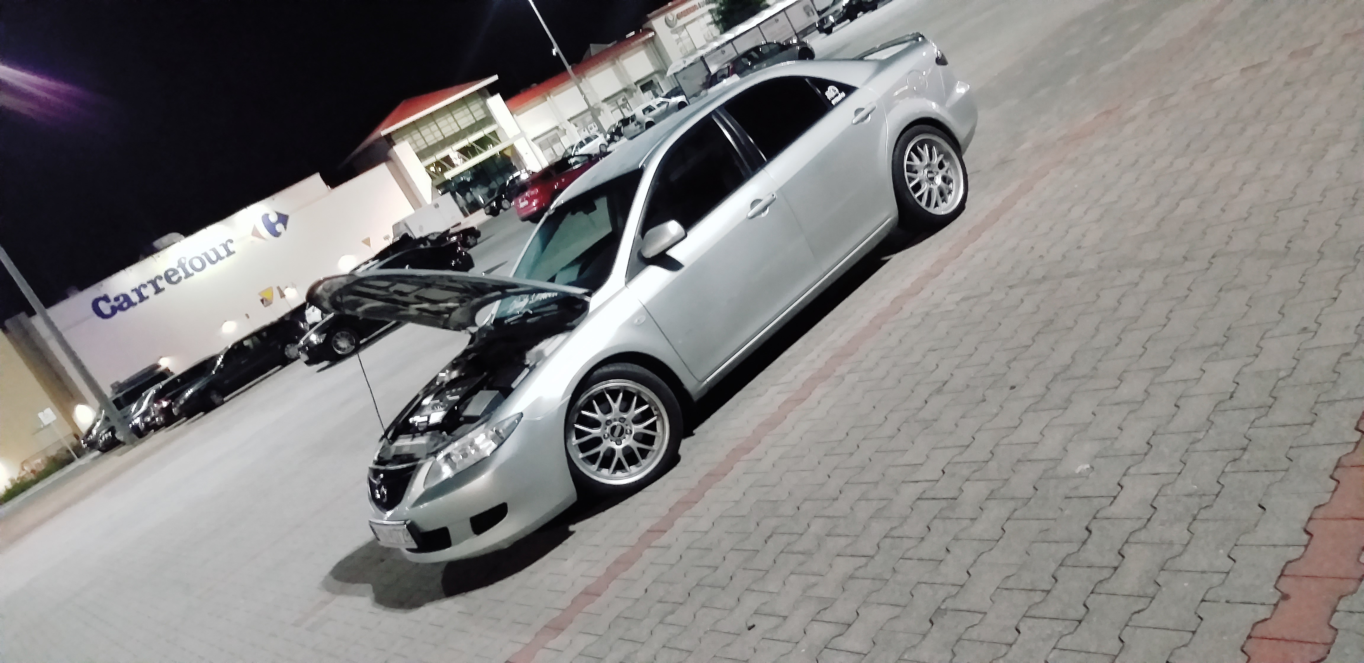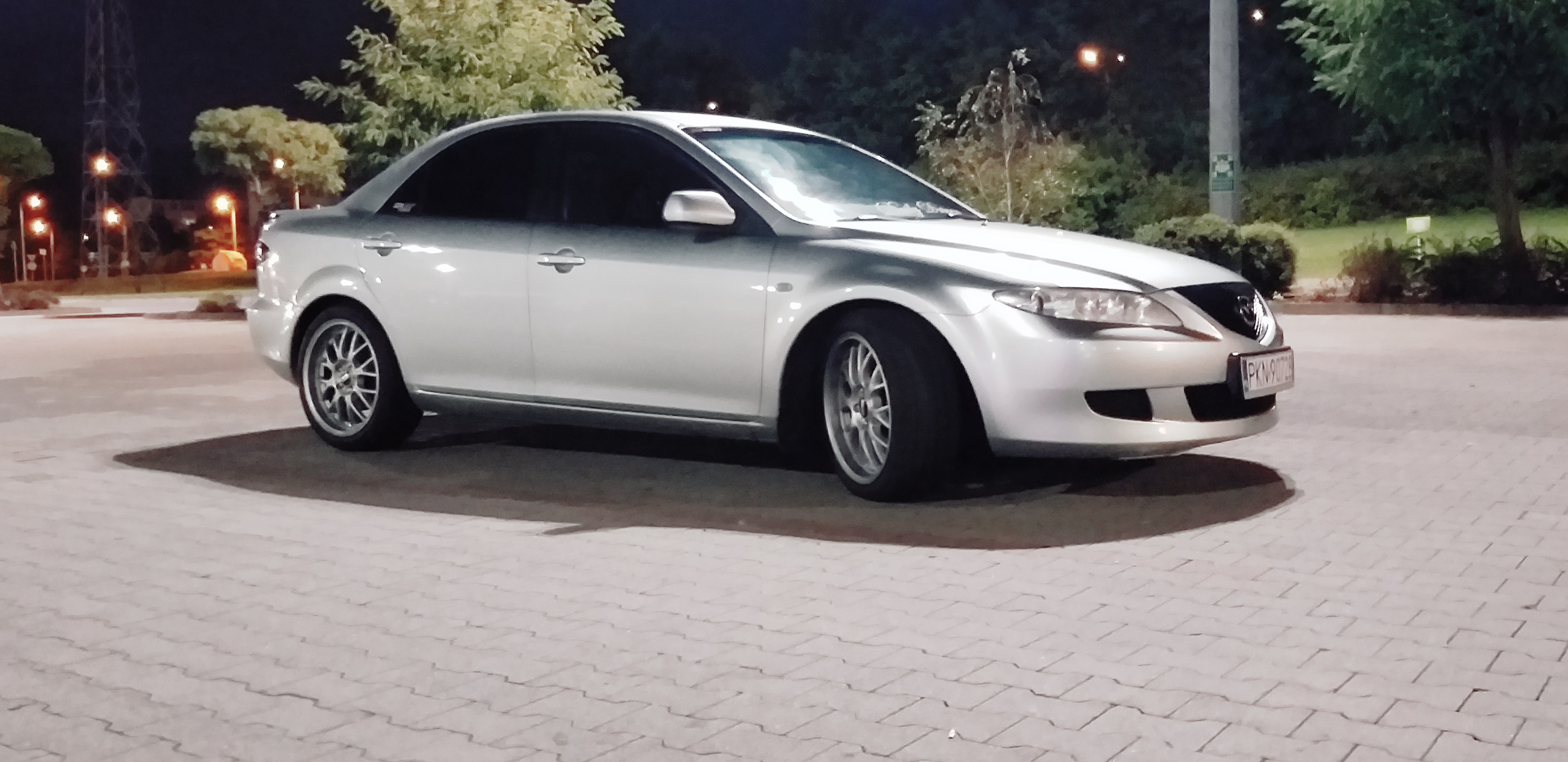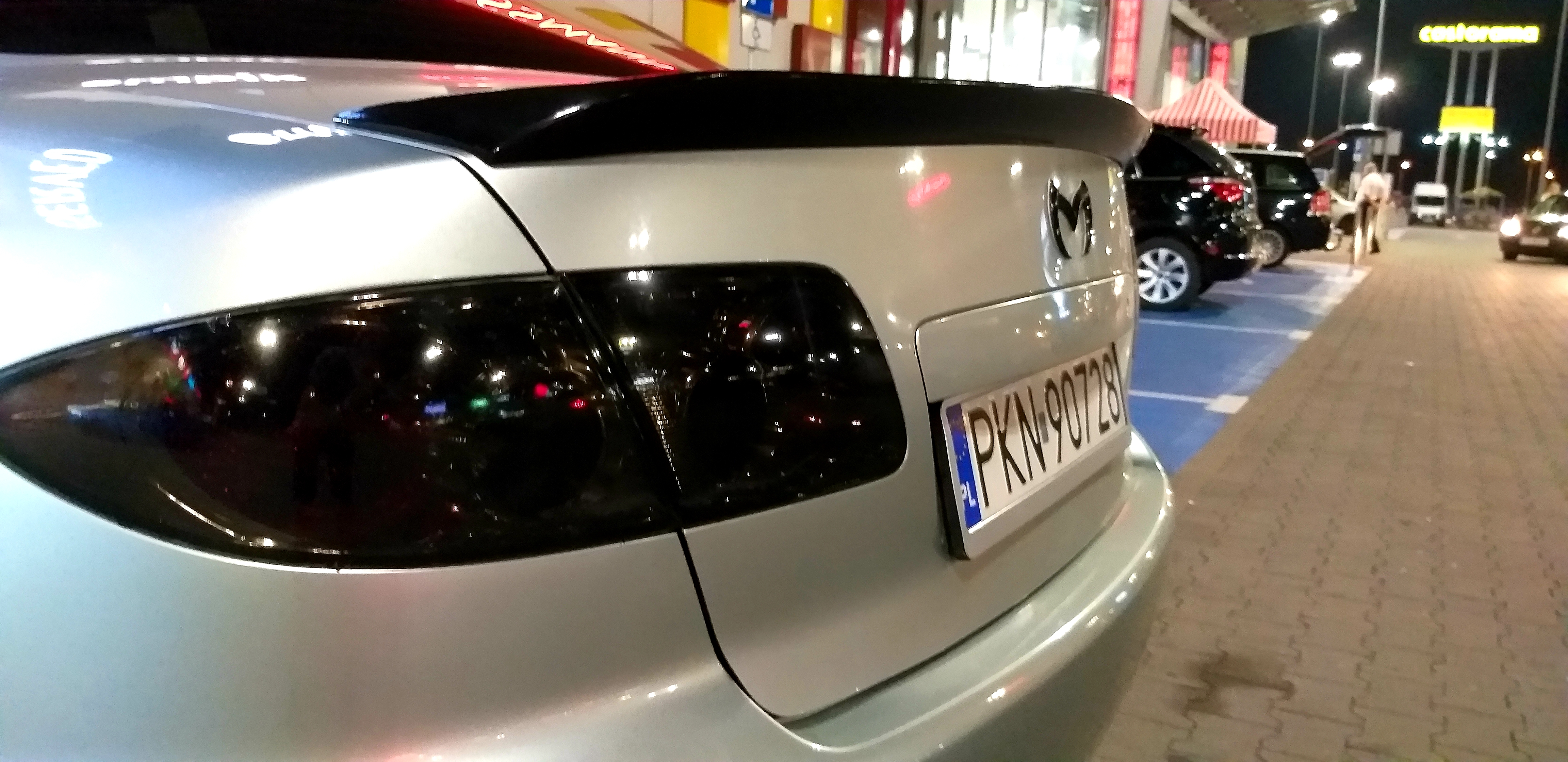 pytam jaki silnik a on że 2.0 Benzyna 141 koni... po tym jak u wiekszosci posiadaczy tych jednostek widzialem 2 wydechy zgłupiałem jak zobaczyłem u siebie taka mała rurke jak w maluchu... zapytałem raz jeszcze czy na pewno... sprzedawca nie powiedział jednak ze to był po prostu PrzedLift... a ja się aż tak bardzo nie znałem ale koniec końców zdecydowałem się na zakup w cenie 4 800 zł darował mi 200 zł i poszło na benzynke wyszło słoneczko w środku poczułem nutke komfortu i nagle... po 60km CHECK... no to świetnie powiedziałem sam do siebie.. dlatego był taki tani... ale jakoś to przełknąłem i dojechałem do domu okazało się później że została wspawana strumiennica Kata nie ma błąd będzie... już i tak się przyzwyczaiłem ... jeździłem 2 miesiace w pełni seryjnym samochodem w dodatkun srebrnym na 15 calowych alufelgach myśląc że patrzy na mnie cały Konin siedzac w zwykłej Mazdzie 6 ktora po zaparkowaniu przy Galerii stała co 3 wóz ... wiec musiałem coś z tym zrobic w ruch poszedł laptop i wrzuciłęm post na grupie majacy na celu dowiedzenie się czegoś o tym samochodzie ..pierwszy napisał do mnie Mariusz Dejneka którego z resztą pozdrawiam... mówił na początku o sprężynach Obniżających .. od słowa do słowa wszystko juz wiedziałem..a ja oczywiscie podniecony zacząłem szukać od razu po odłożeniu słuchawki ..Mariusz mówił H&R -30mm/-35mm zależy jak usiądzie ale od KOMBI .. znalazłem ! 250zł używane kupione założone ... przód bajka zakochałem sie tył..wisi... okazało się że się z kolegą nie zrozumiałem ponieważ usłyszał on że posiadam instalacje LPG i dlatego sprezyny od kombi sprawdza się idalnie ponieważ u niego tak wlaśnie jest i siedzi idealnie... zmieniłem na oryginalne ... kupiłem 3miesiace pózniej felgi ASA REVOLUTION 18' na oponie 45/215 wyglądało obłednie ale Mariusz mówił ze KOZA weźcoś z tym zrób.. sprzedałem H&R kupiłem sprezyny firmy JAMEX służą mi do dziś dobre wydane 400zł