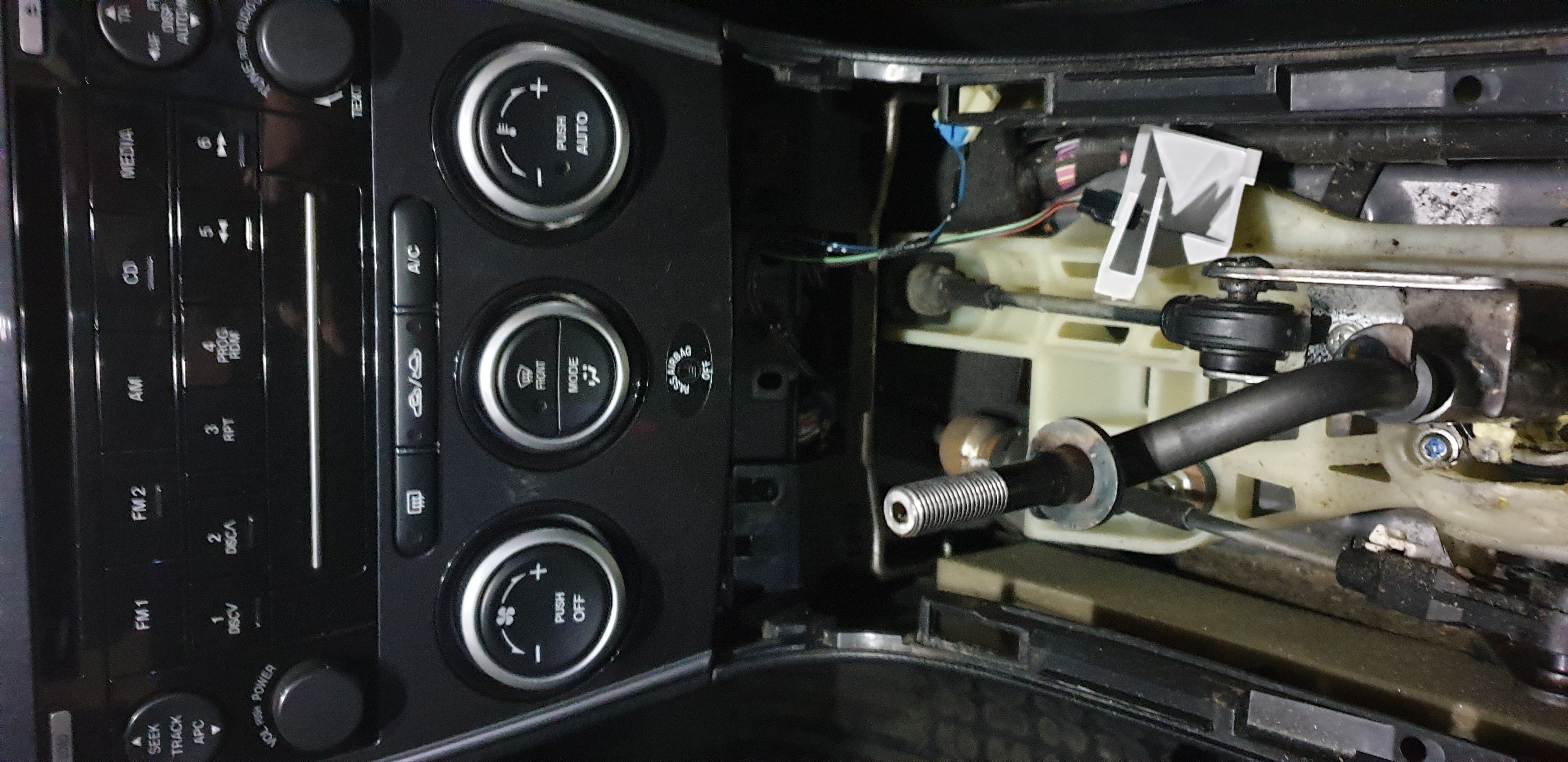 Przy okazji prawie urwałem kabelki od podświetlenia popielniczki, w większości filmików jakie oglądałem z demontażu radia ludzie odpinali tylko kostkę od zapalniczki, tutaj musiałem odkręcić cały ten plastik z oprawką. Nawet nie wiedziałem że tam ten kabel jest :D