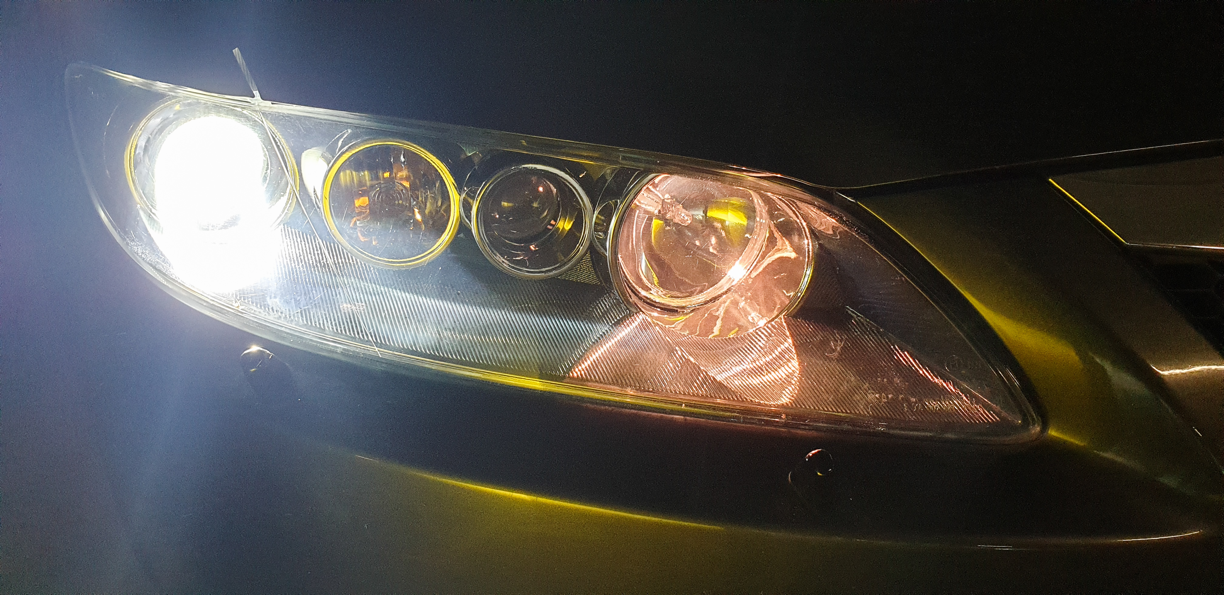 Mówiłem też, że chcę wypolerować lampy. Ogólnie operacja myślę, że się udała tak w 3/4. Na ogół jest duuużo lepiej niż było, nie udało się zebrać głębszych rysek, bo zacząłem matowić zbyt wysoką gradacją papieru ściernego, ale masę mniejszych rysek i delikatne zmatowienia na górze lamp zeszły bardzo ładnie, więc nie powtarzałem procesu, następnym razem będę wiedział co zrobić inaczej.