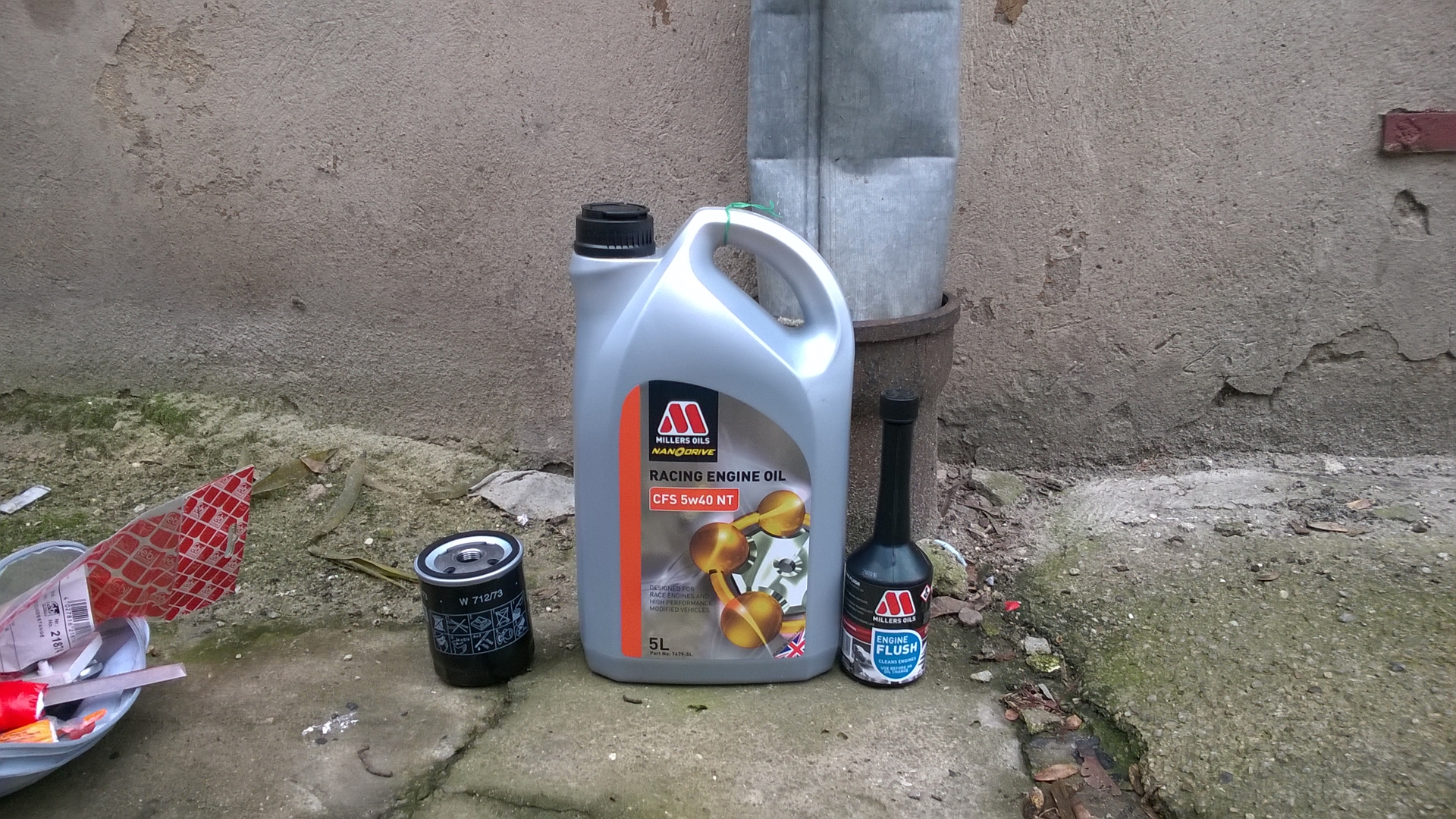Ponad 10 000 km zrobione, przyszła pora na wymianę oliwki. Wpadł olej Millers CFS Nanodrive 5w40, płukanka Millersa i filtr oleju Mann.